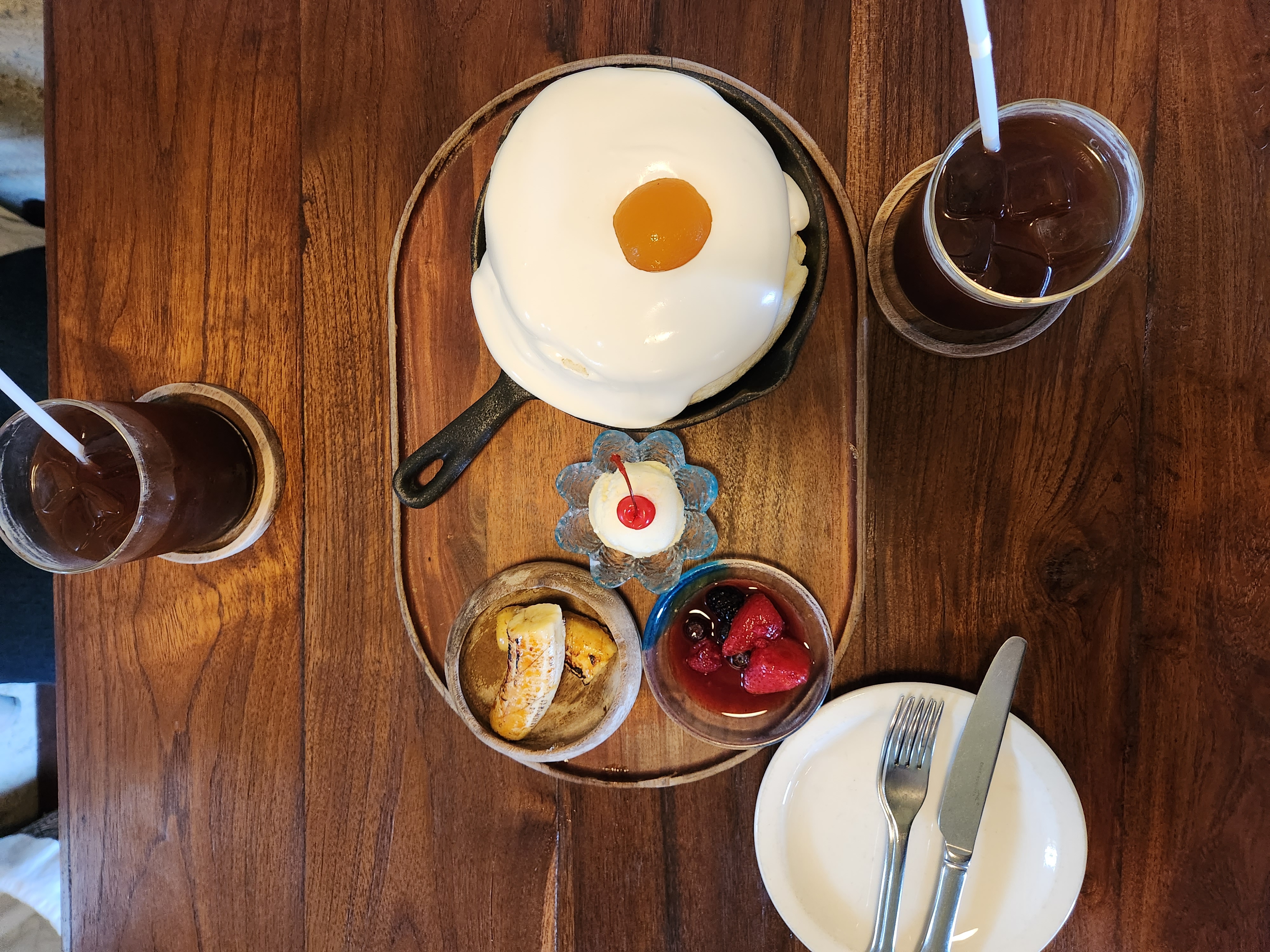 수플레 팬케이크는 굉장히 부드럽고 두명이 먹기 양도 딱 좋았어요.