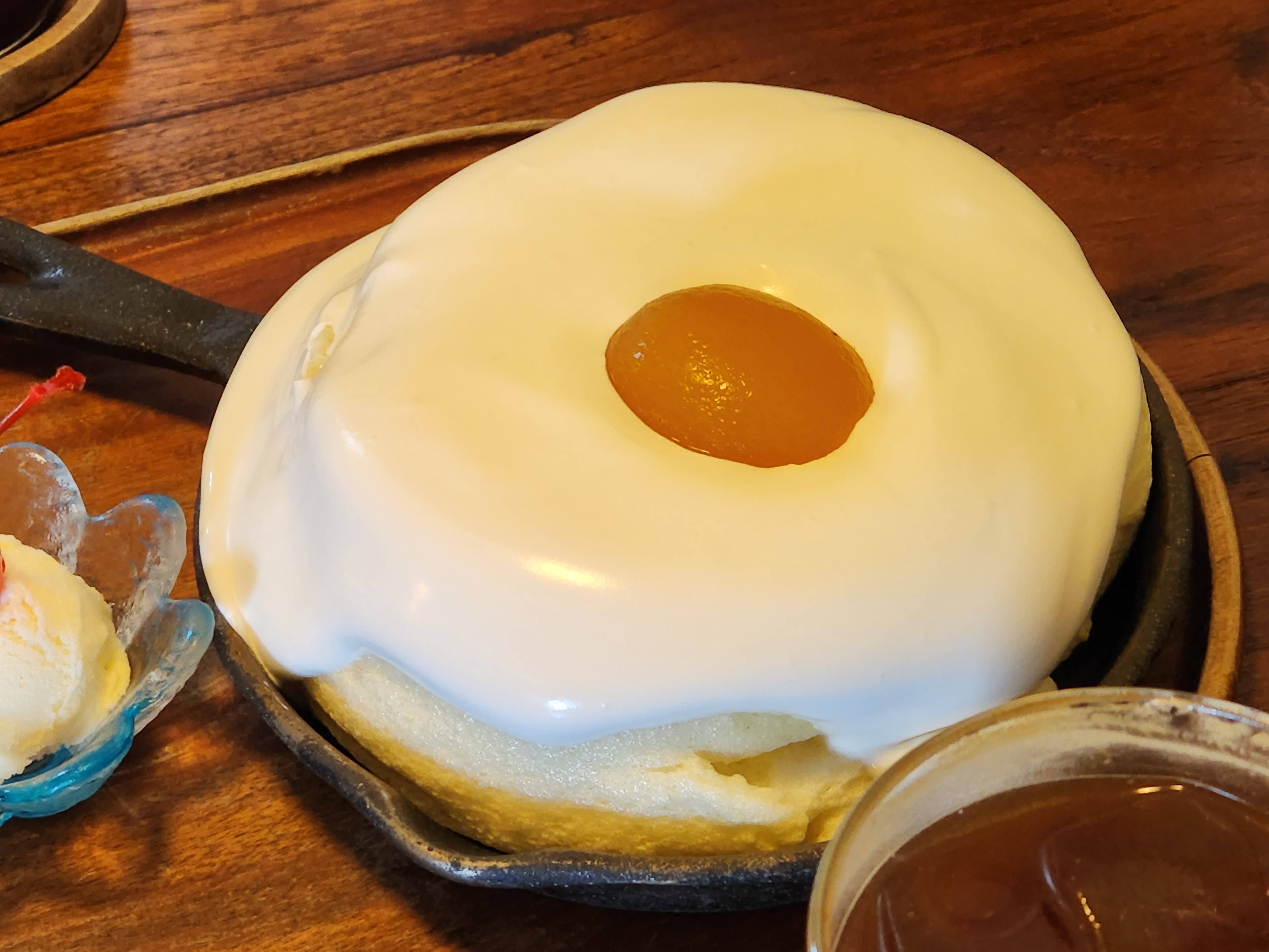 당당 수플레는 마치 계란후라이 같은 비주얼을 가지고 있어요.