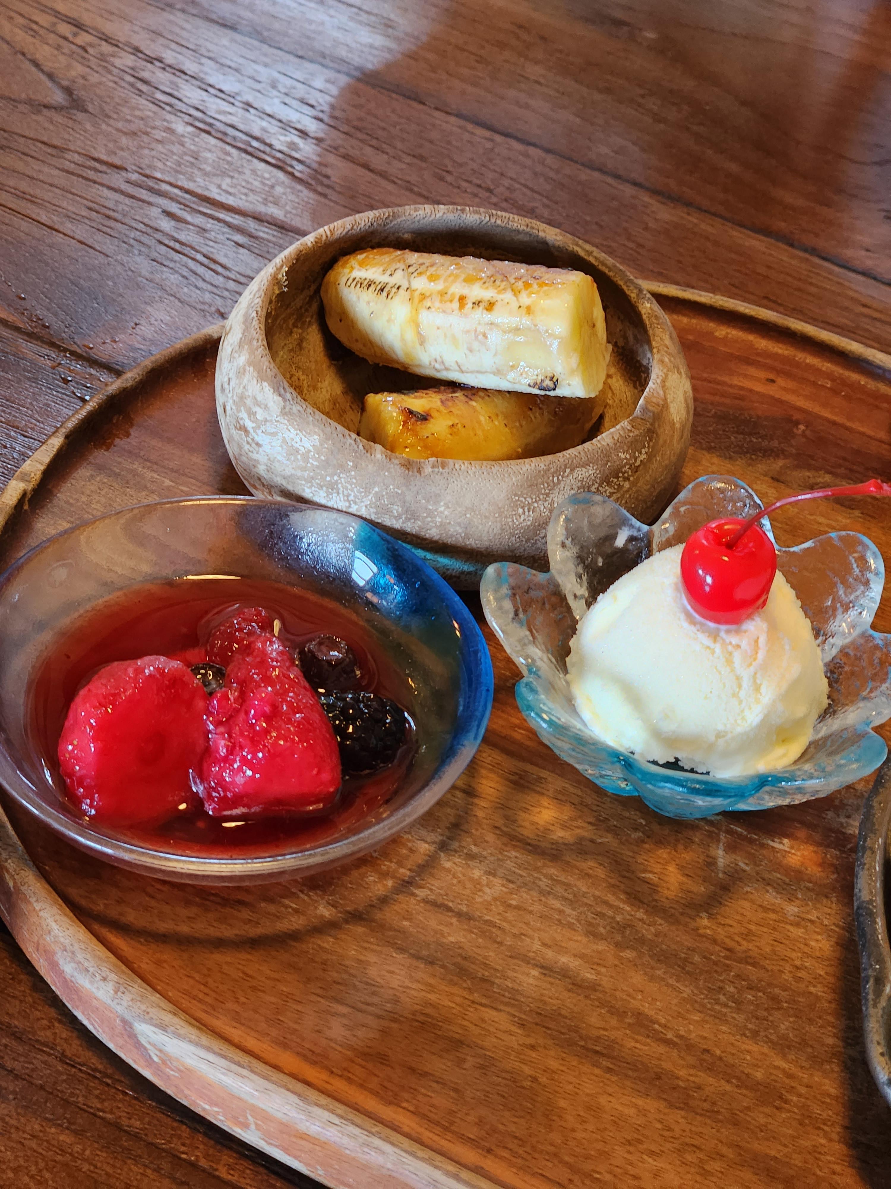 제주 카페 당당수플레와 함께 나오는 바나나, 딸기잼, 아이스크림이은 당당수플레와 함께 곁들여 먹으면됩니다.