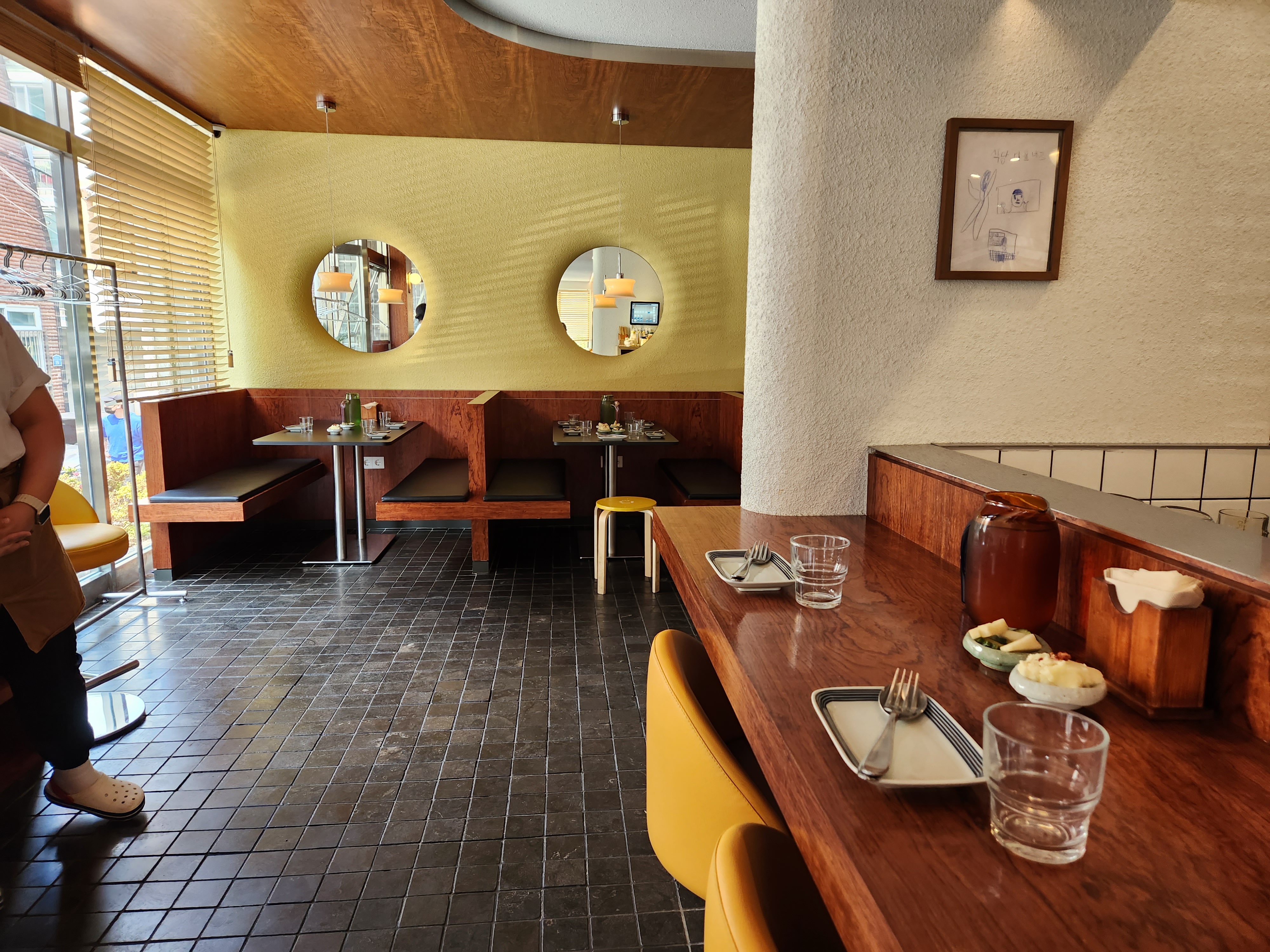 솔직히 그냥 테이블에 앉고 싶었는데 인원이 2명이라고 했더니 바 테이블로 안내해주더라고요.