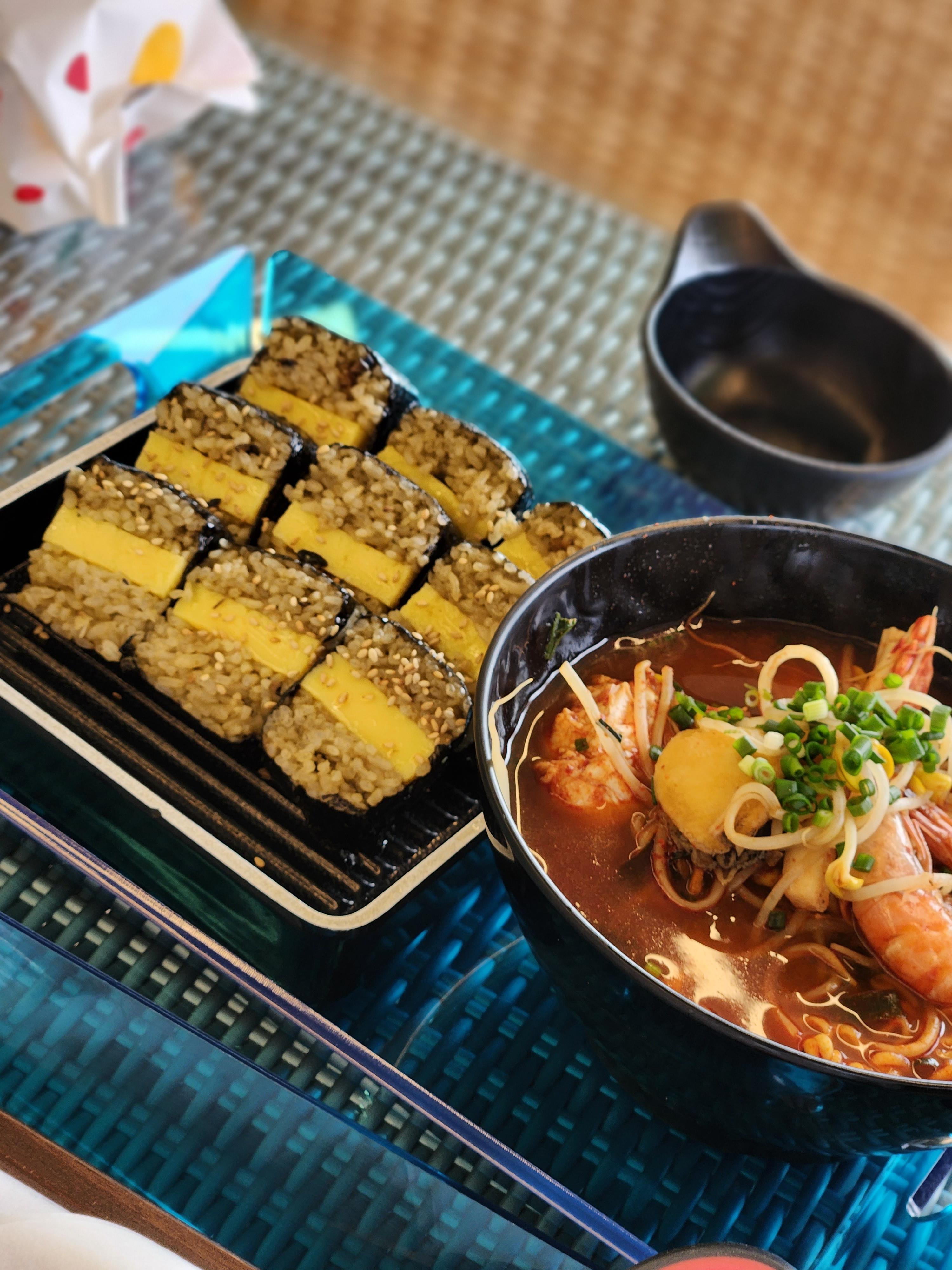 라면, 김밥, 오징어 튀김의 조화가 굉장히 좋았고,