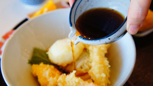 에비텐 붓카케는 바삭한 새우튀김 2마리가
