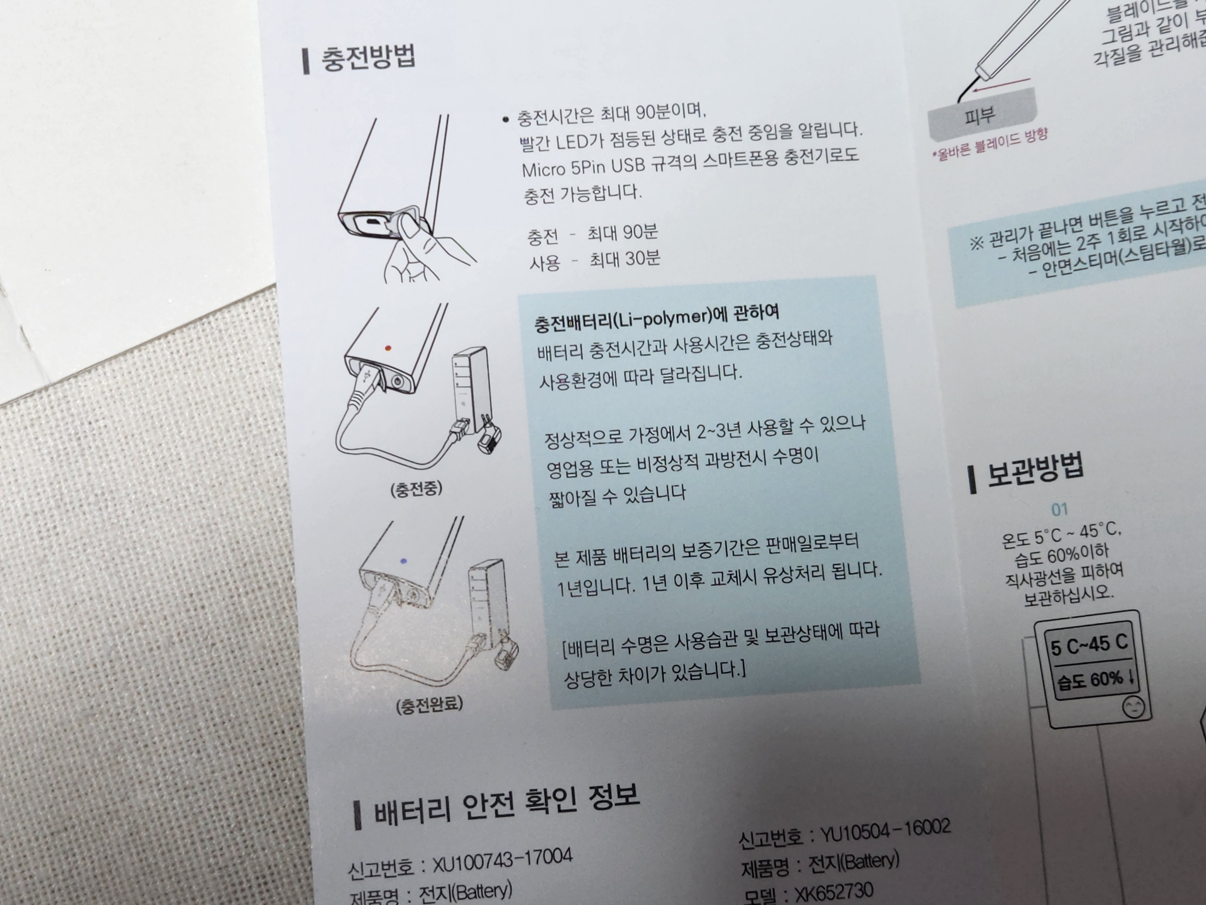 조금 아쉬운점이 있다면, 요즘 충전선이 모두 C타입인데, 라벨르 초음파 필링기는