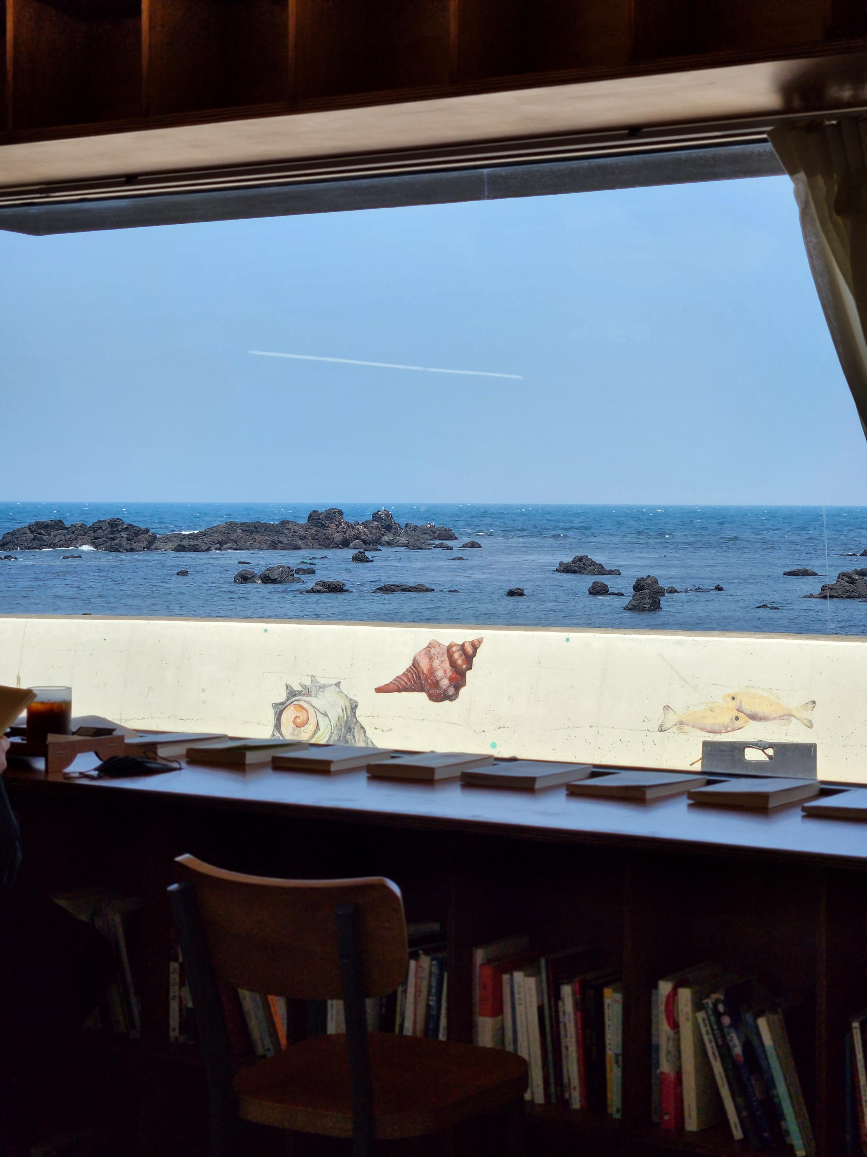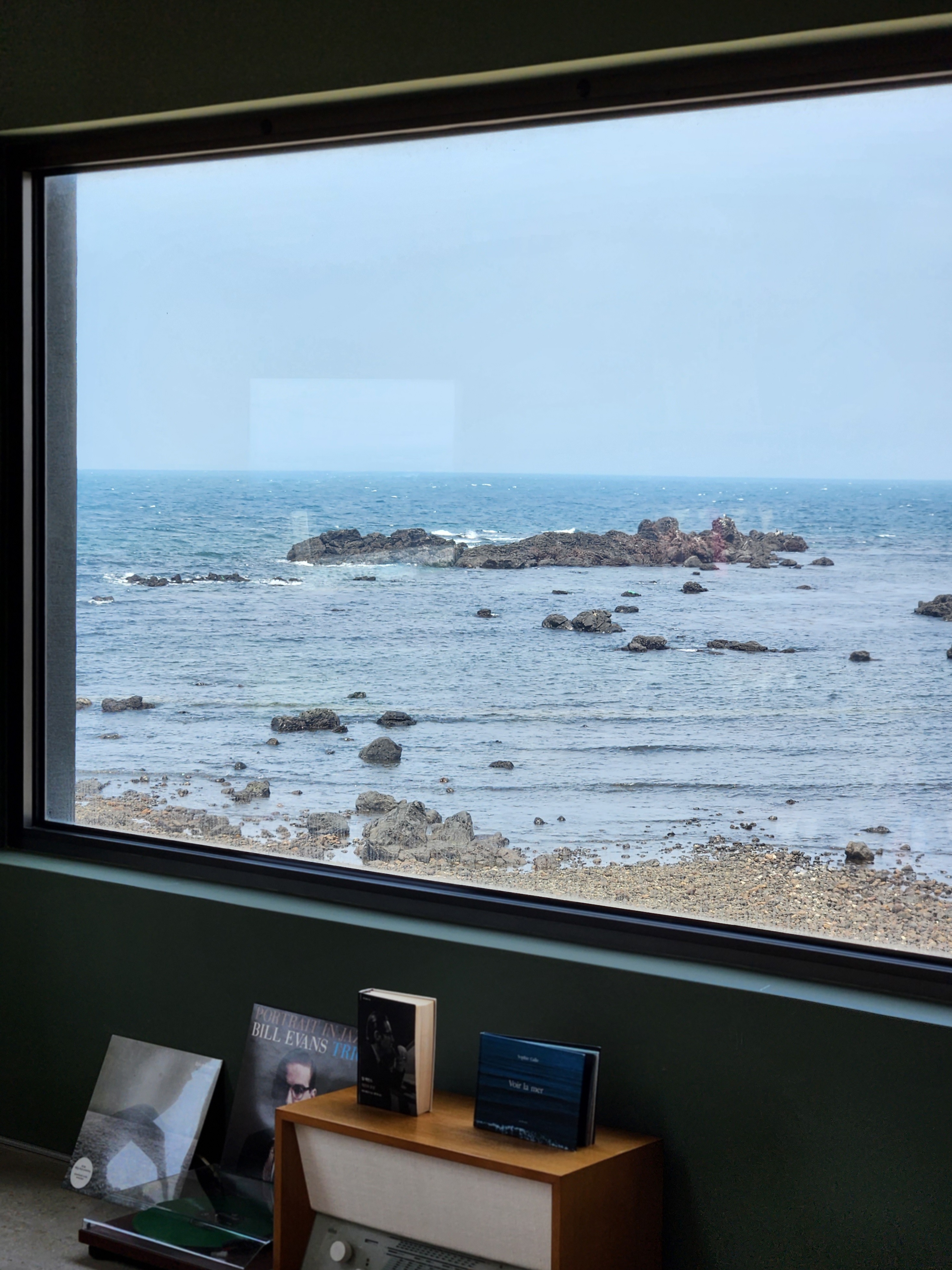 창문 너머로 제주의 애월바다가 한눈에 들어오고,