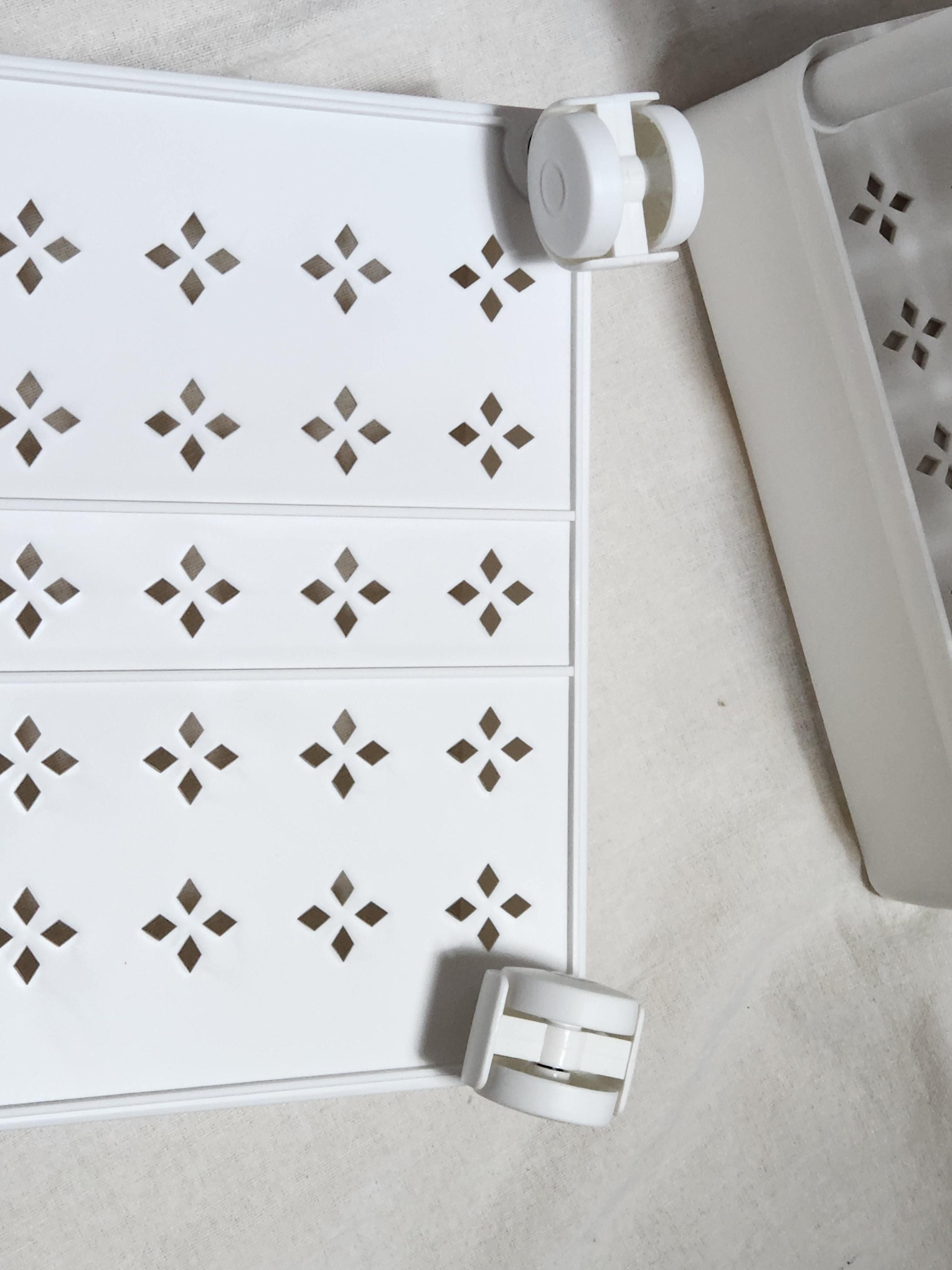코멧 홈 3단 수납 선반 화이트로 깔끔하게 틈새에 다양하게 정리할 수 있습니다.