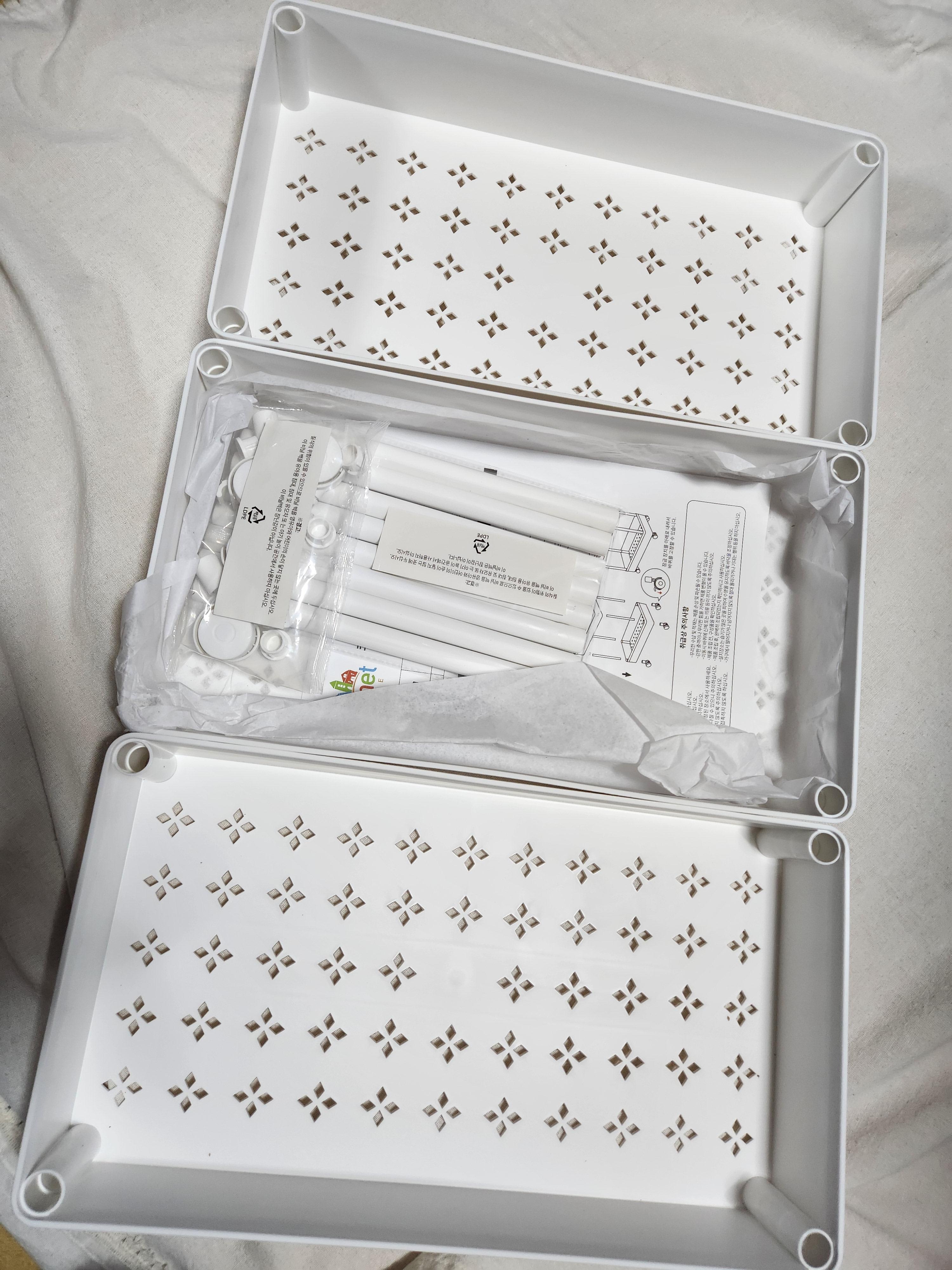 맨 밑 부분은 굴러다닐 수 있는 바퀴가 있고, 플라스틱 봉도 함께 옵니다.