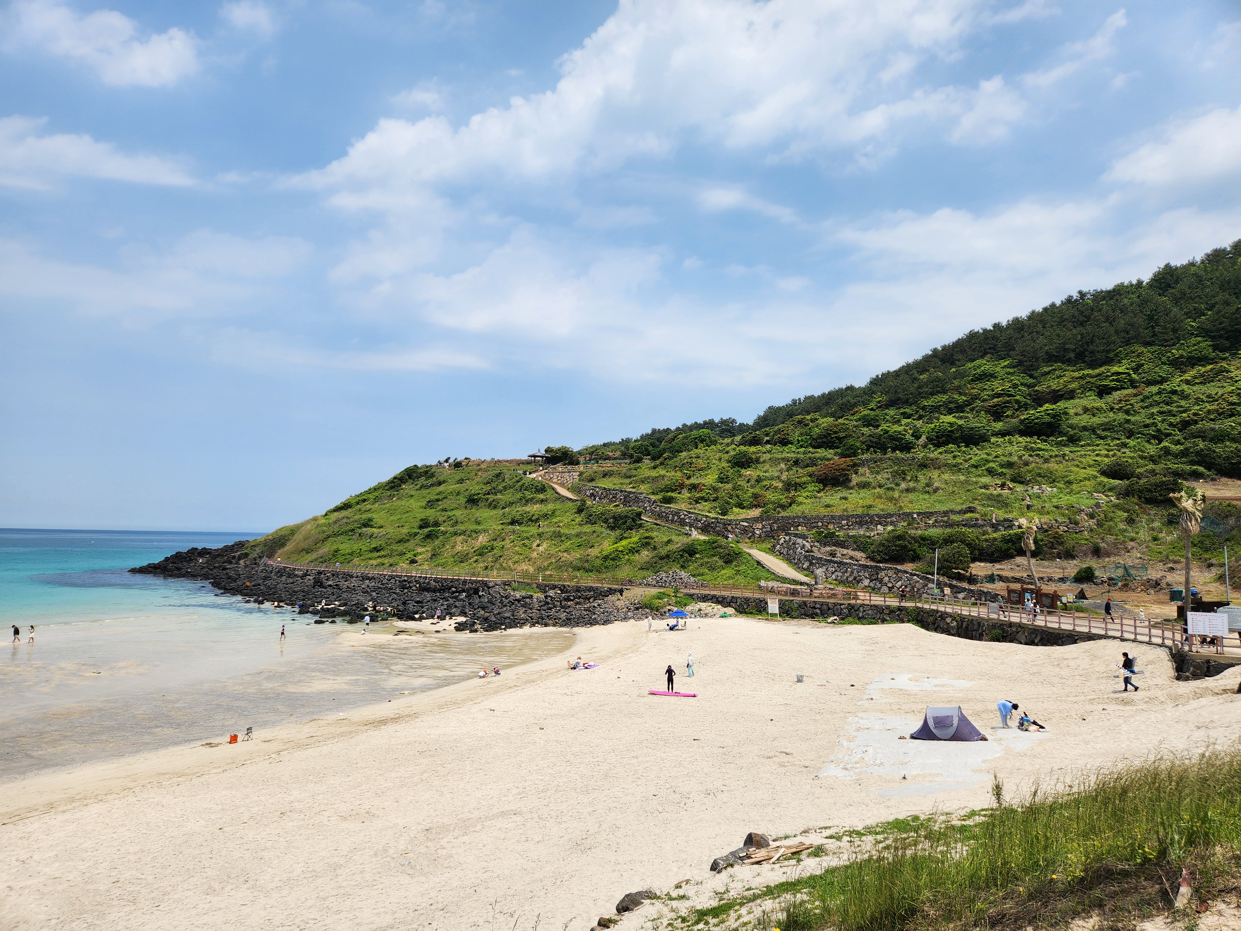 넓은 백사장과 화장실 샤워시설이 있어 매년 정말 많은 사람들이 찾아오는 제주 해수욕장이에요.