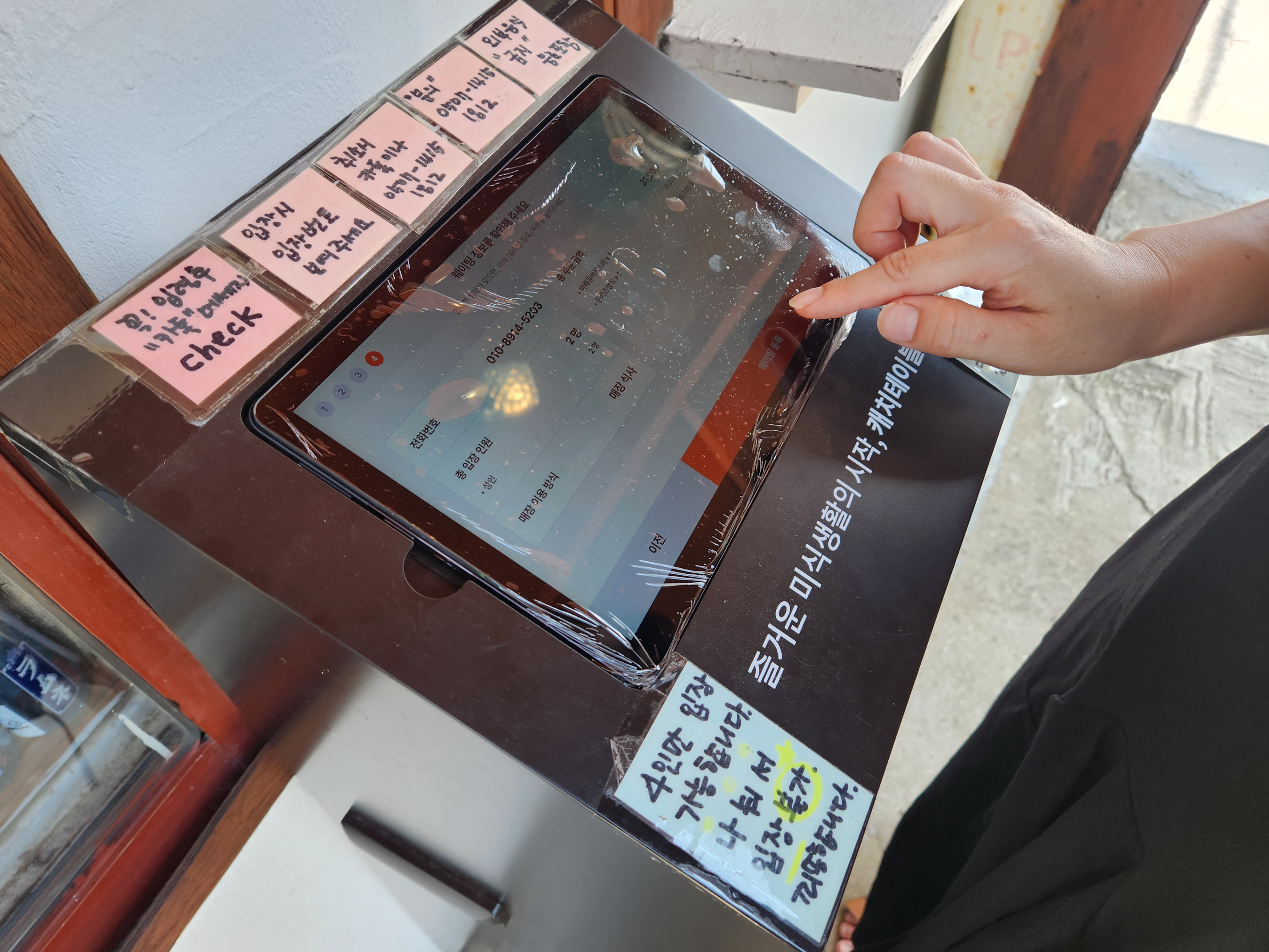 제주 웨이팅 맛집 만지식당은 가게 바로 앞에 이렇게 키오스크로 대기표를 받을 수 있어요