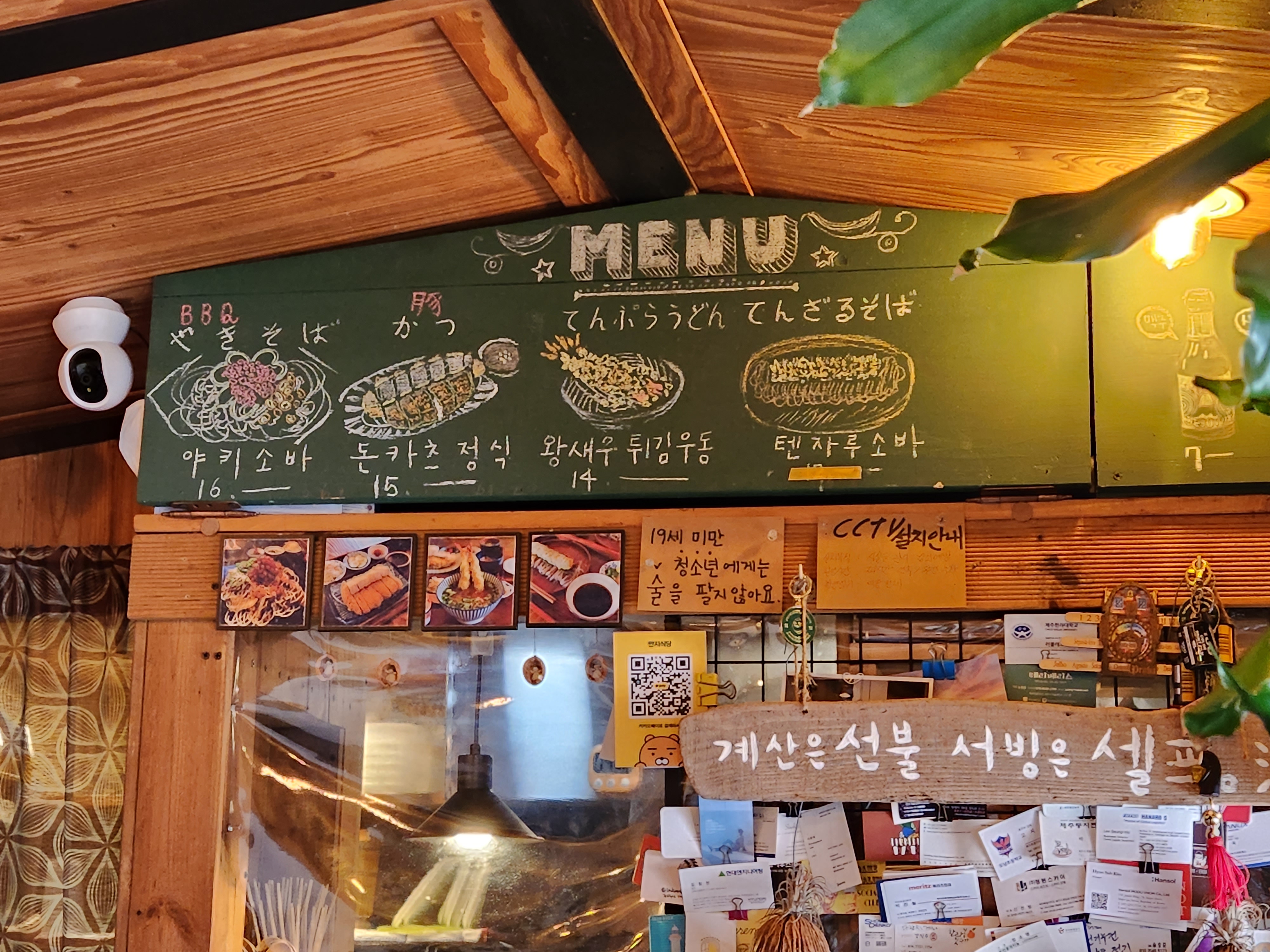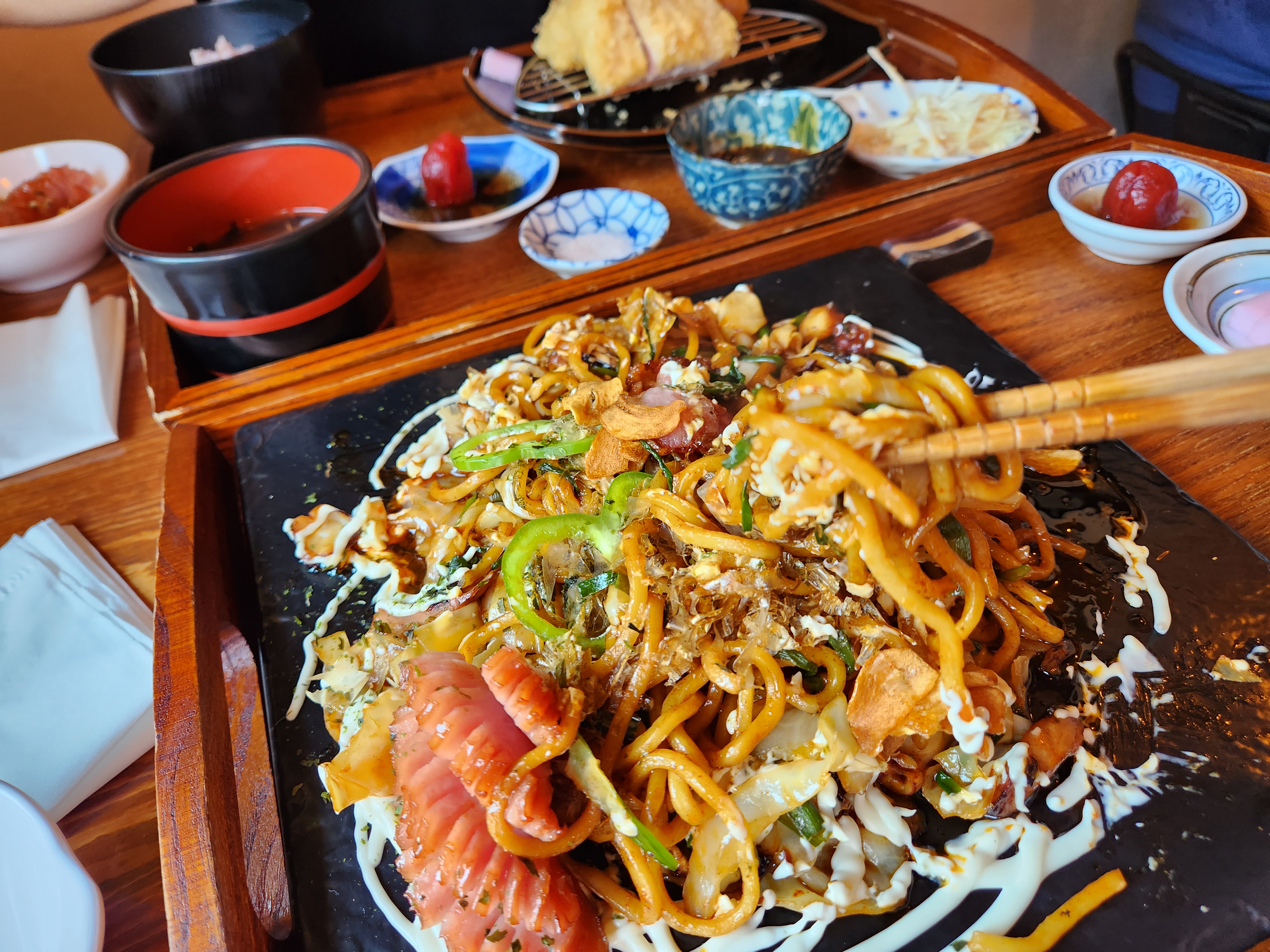 야키소바, 돈카츠 정식, 왕새우튀김우동, 텐자루소바 이렇게