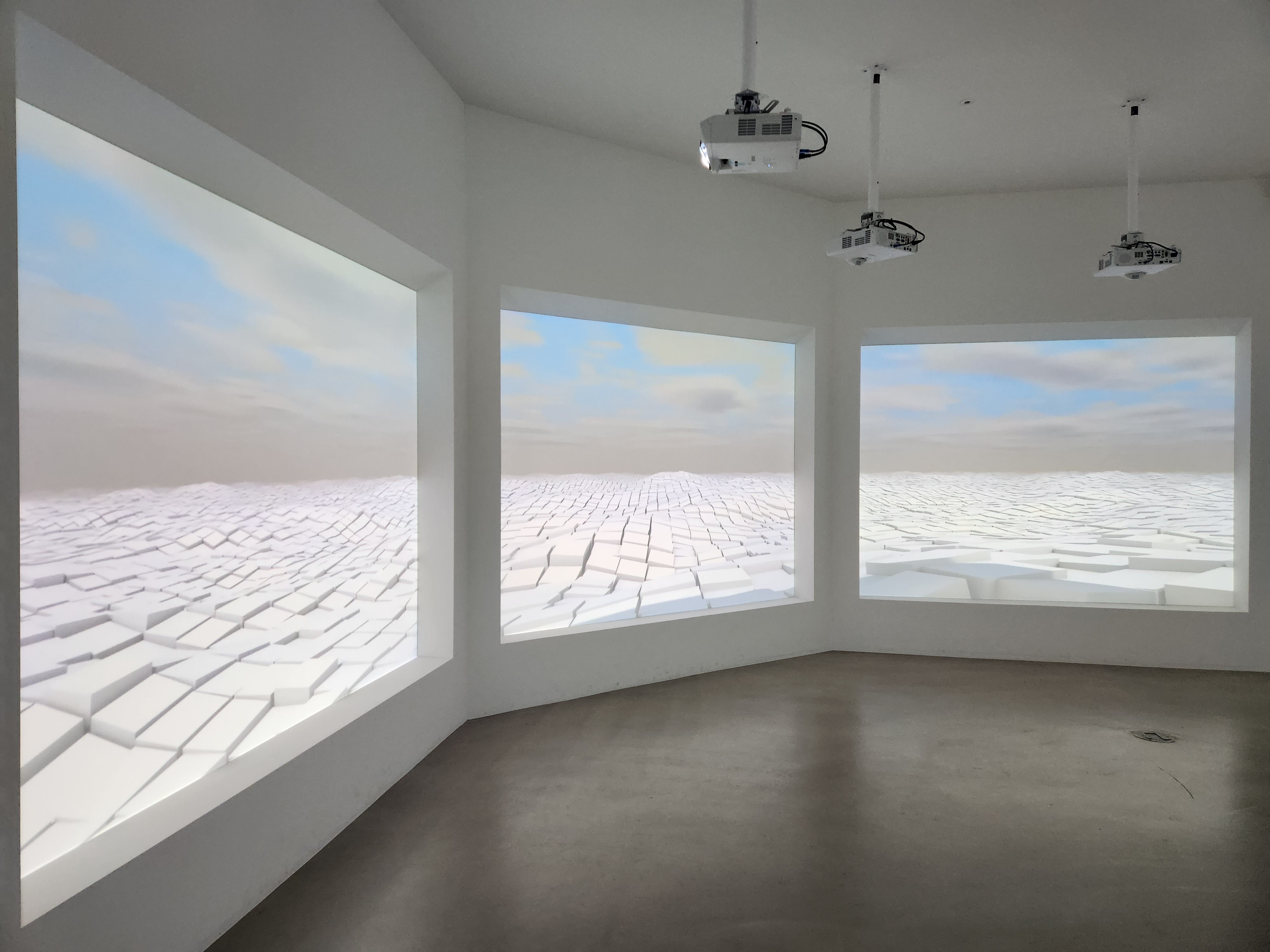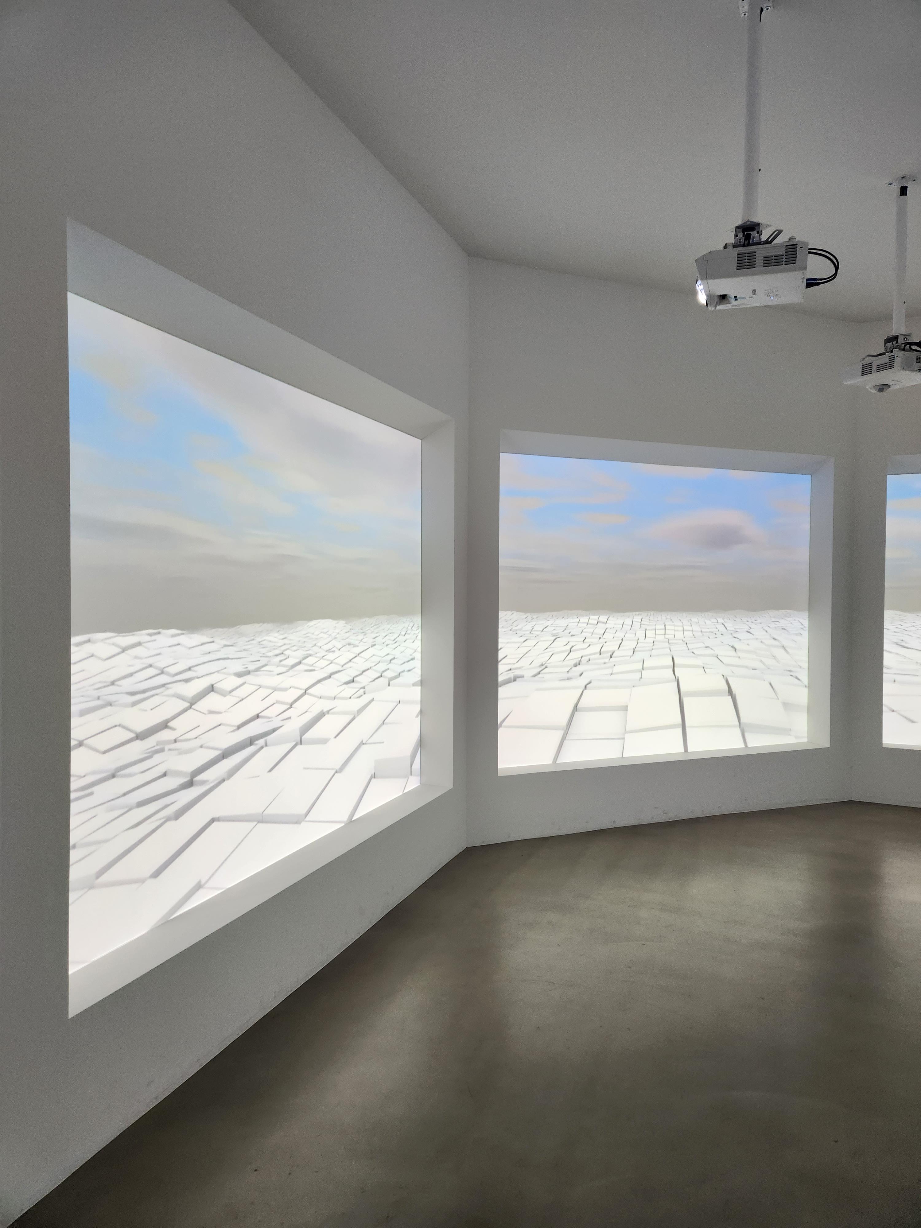 수많은 백색 육면체들이 마치 바다 한가운데 있게 만드는 공간을 표현한 곳이에요.