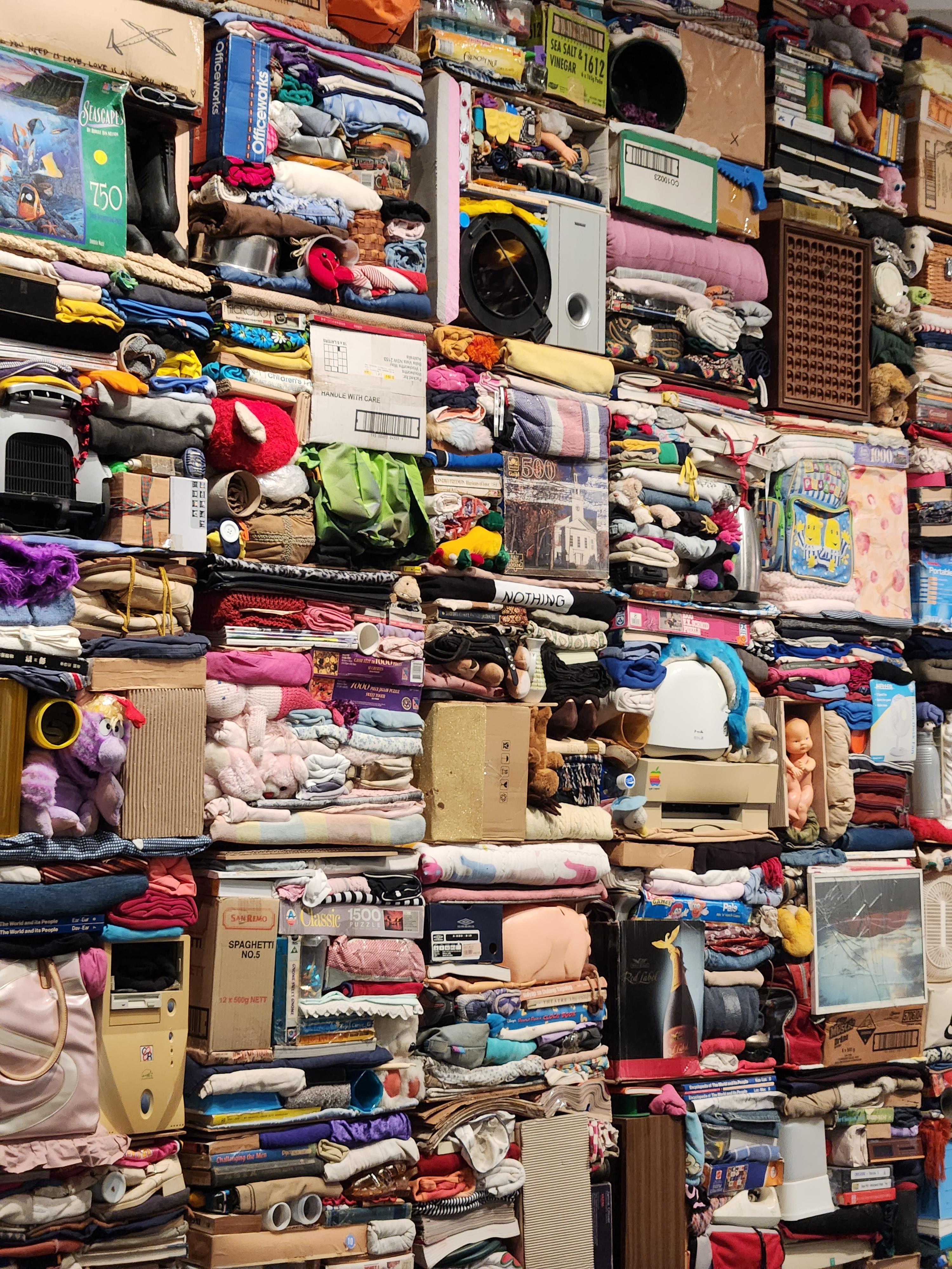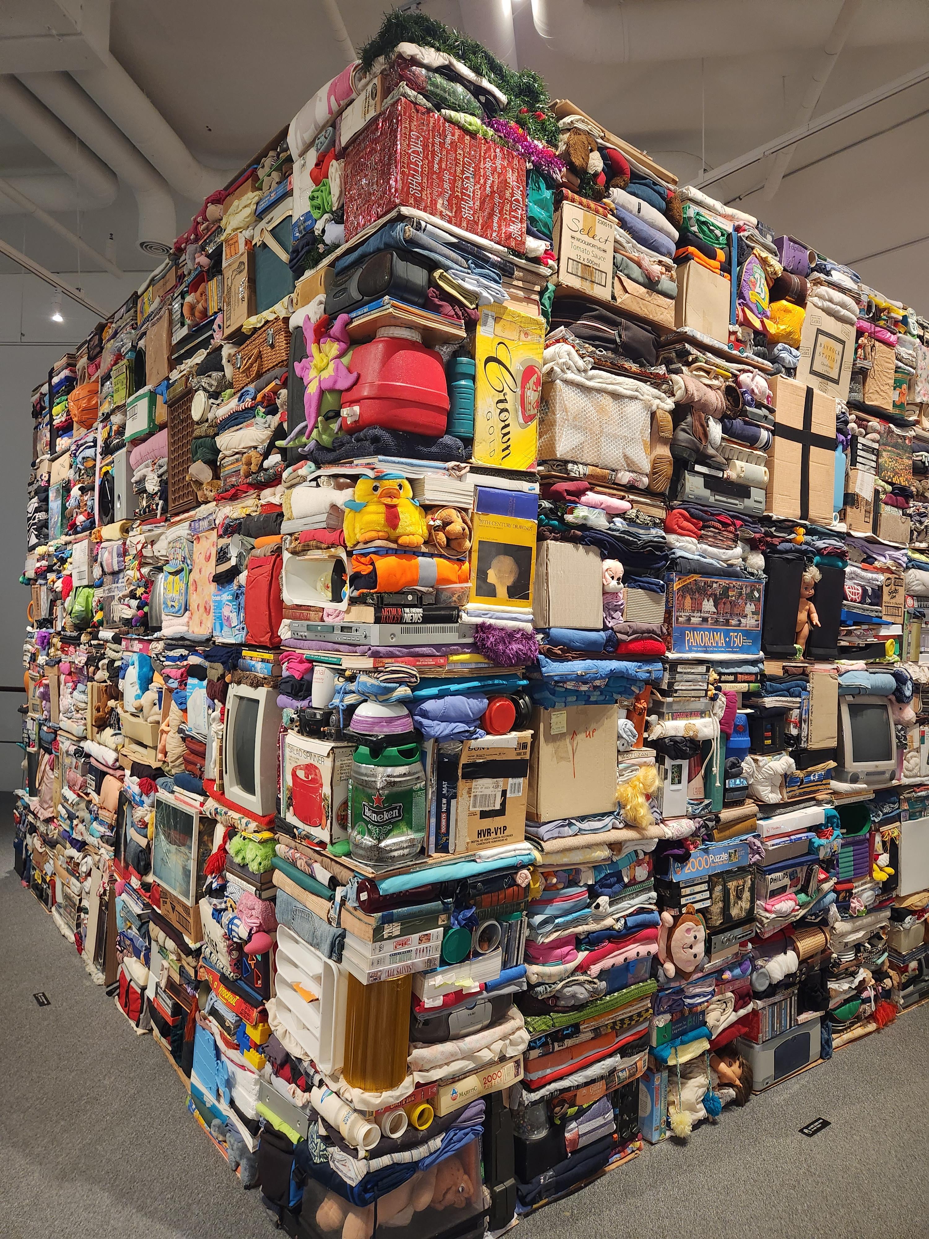 개인물품이 들어 있는 상자 140개를 쌓아올려 만든 대형 설치 작품으로 한사람의 살림살이가 빈틈없이 들어가 있고