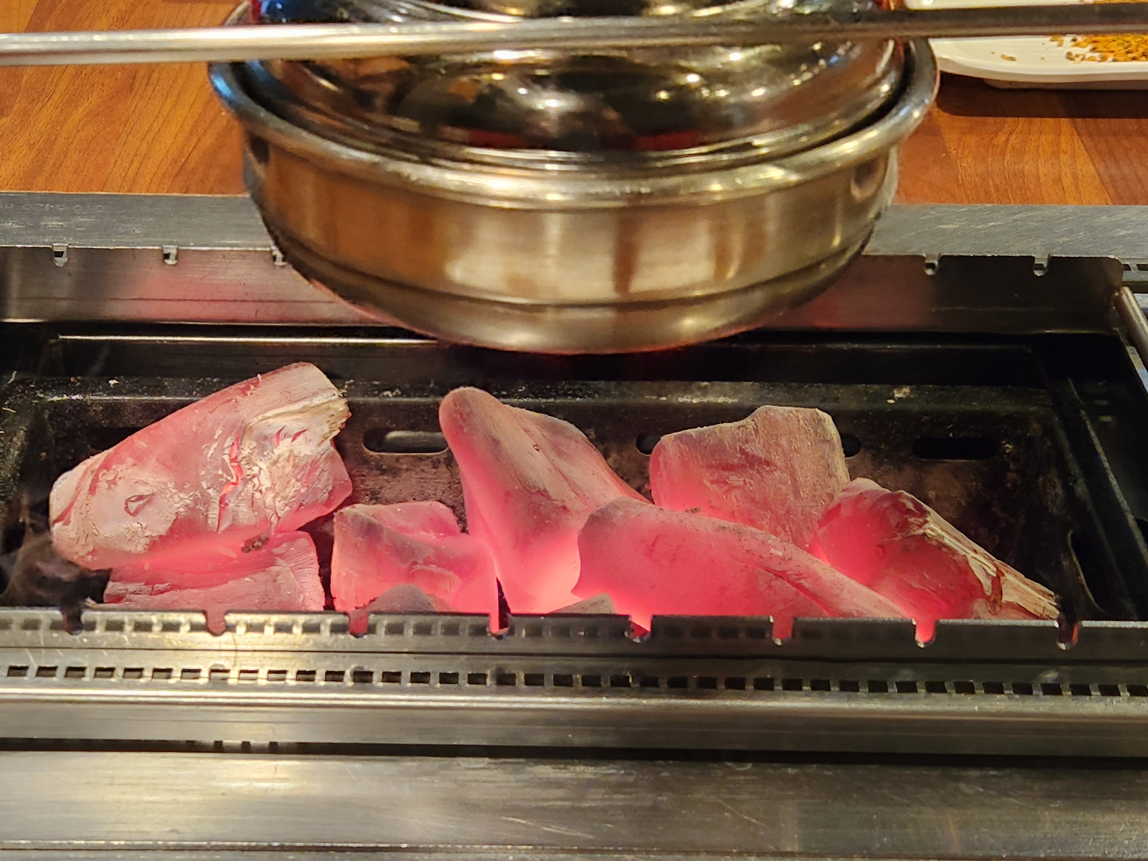 뜨거운 숯불이 들어오고, 양꼬치를 하나씩 올려 구워주면돼요.