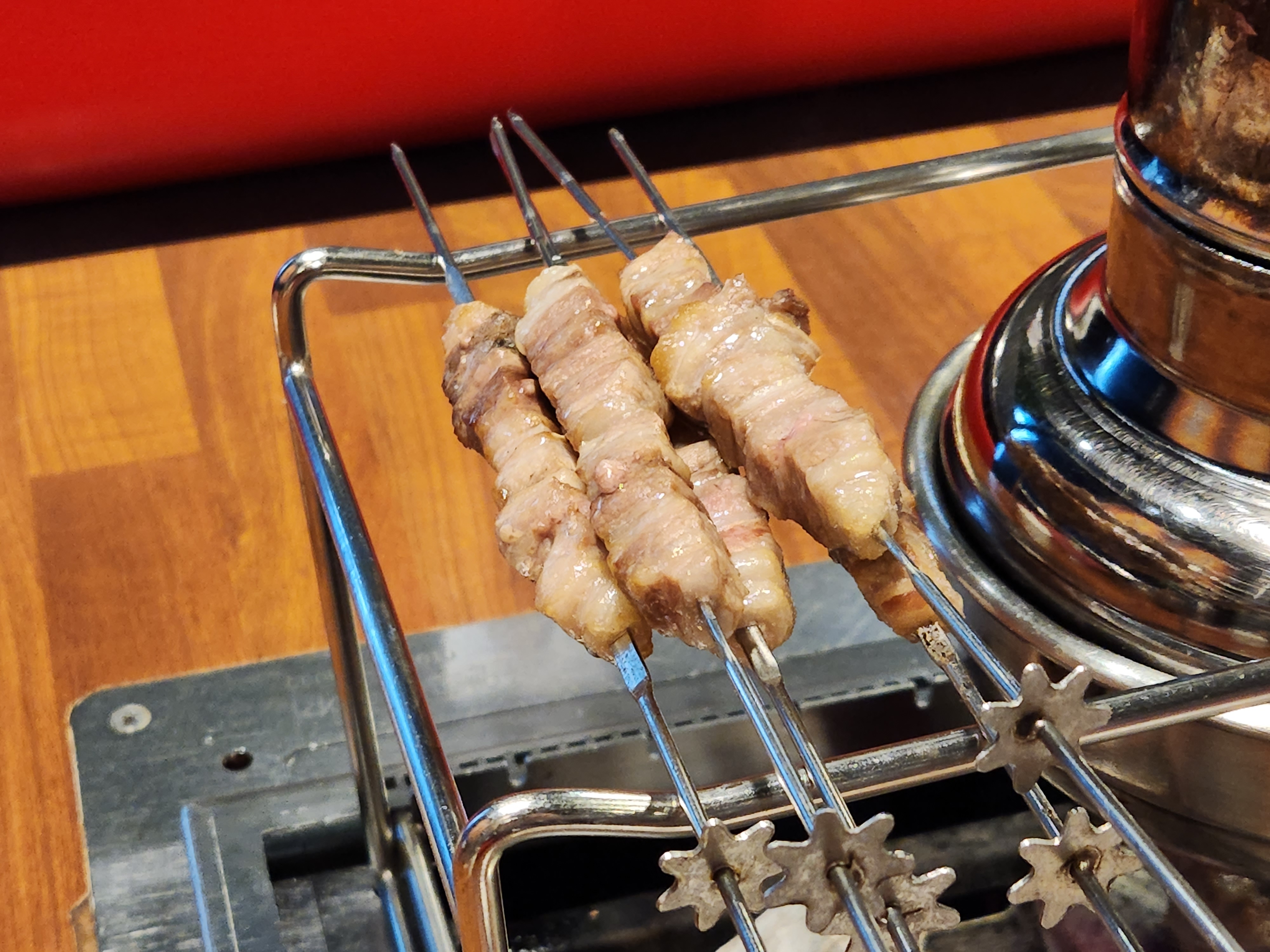 요즘에는 자동으로 꼬치가 돌아가기 때문에 편하게 올려주고 익은거 먹고 이런 시스템이 정말 편한 것 같아요.