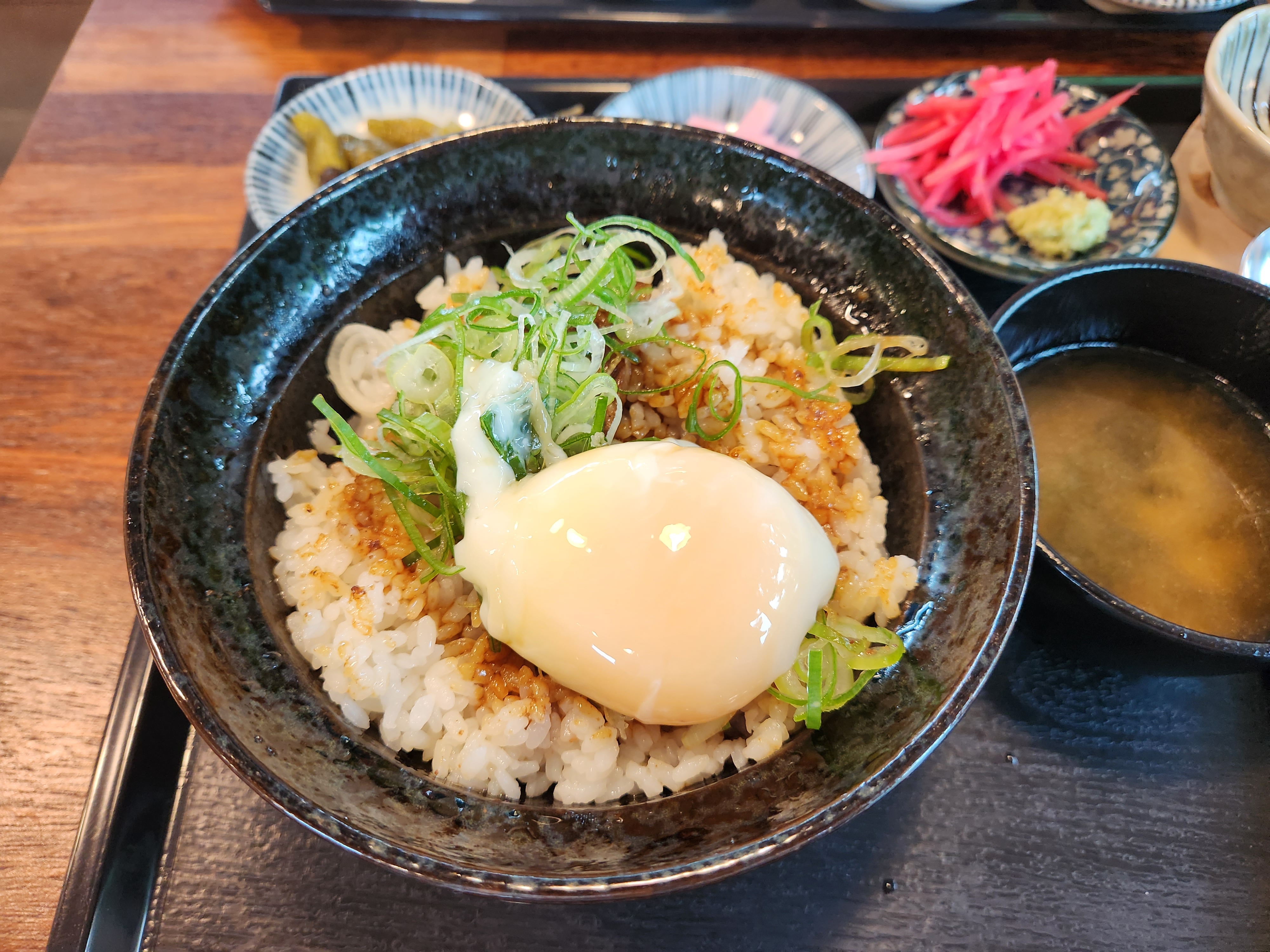 밥에 수란을 넣어 비벼 먹으면 맛있다고해요.