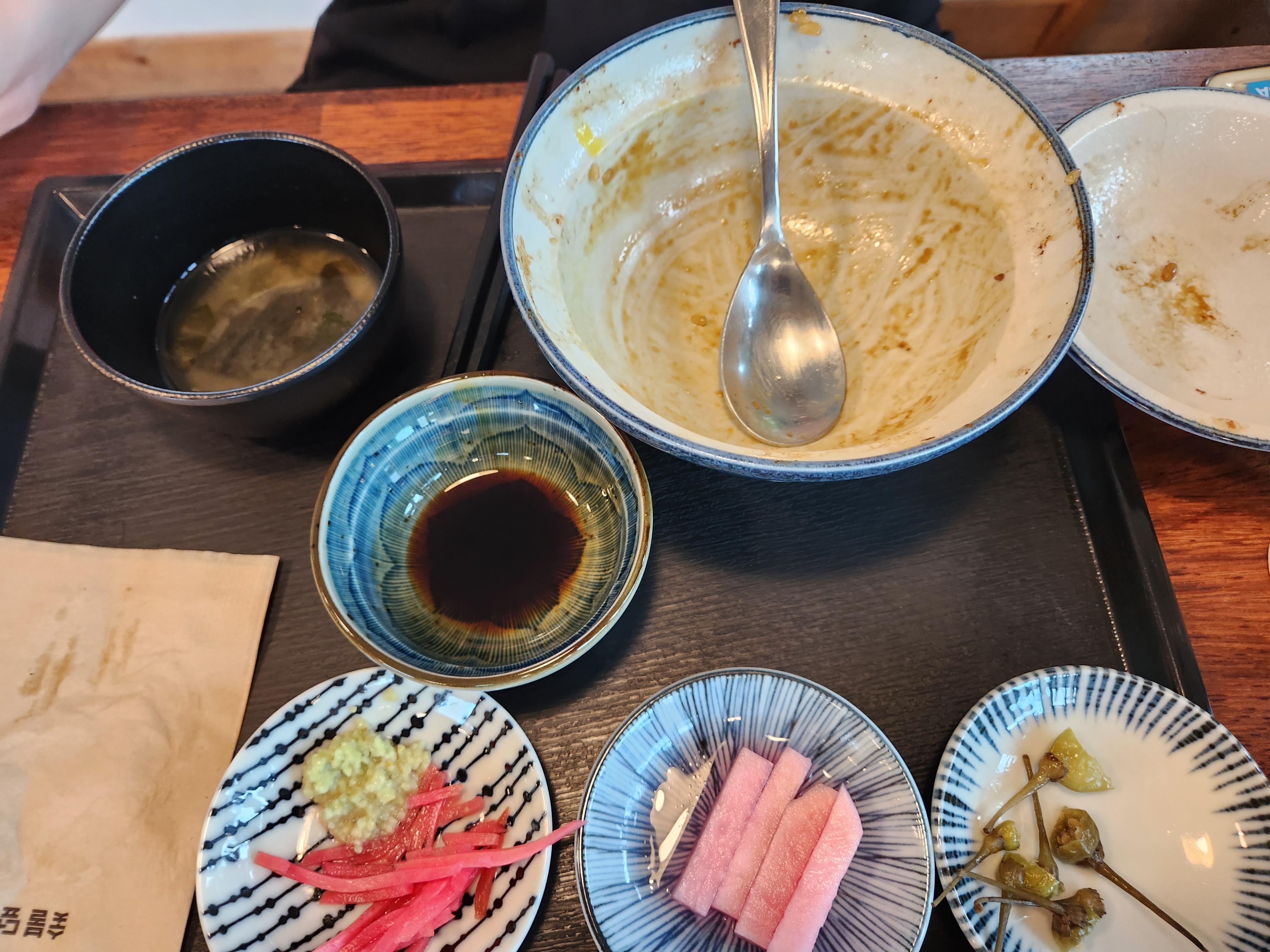 밑반찬은 무절임과 생강, 매운고추가 나와요.