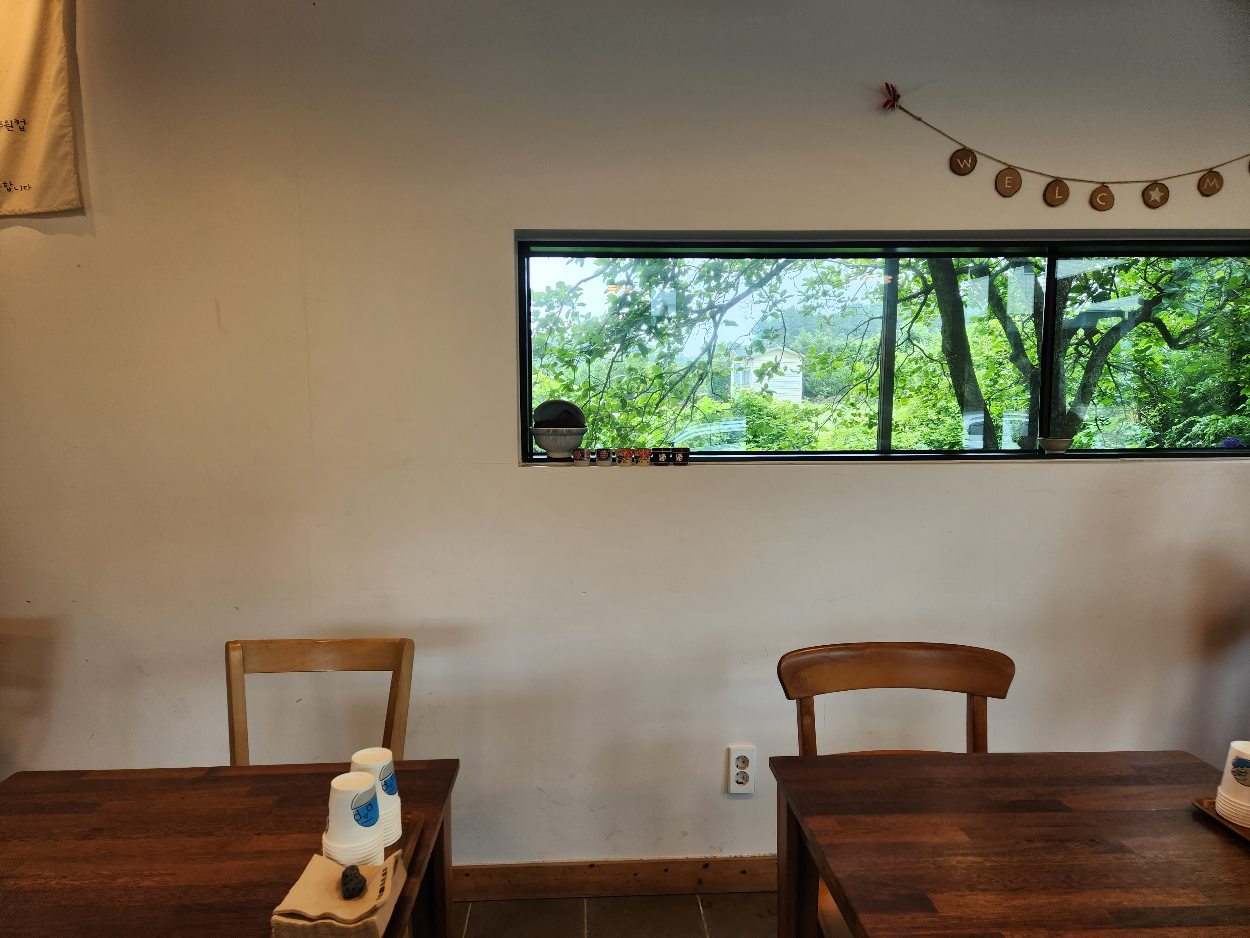 전체적으로 인테리어는 깔끔하고 긴 창문이있어 초록초록한 야외를 구경하는 것도 좋았어요.