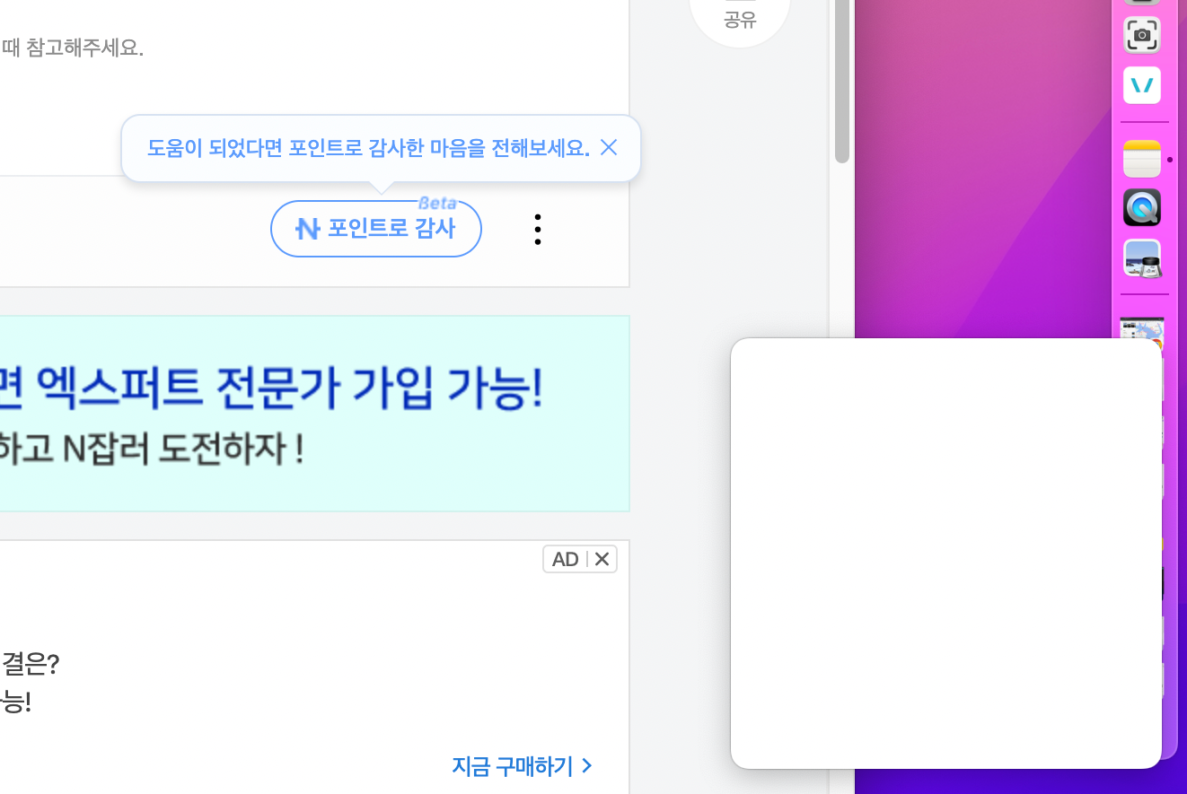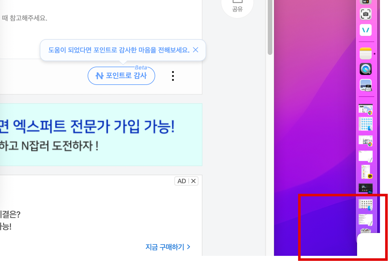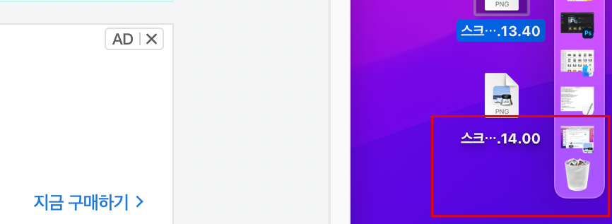 마우스 커서를 맥북 오른쪽 하단에 가져다 대면