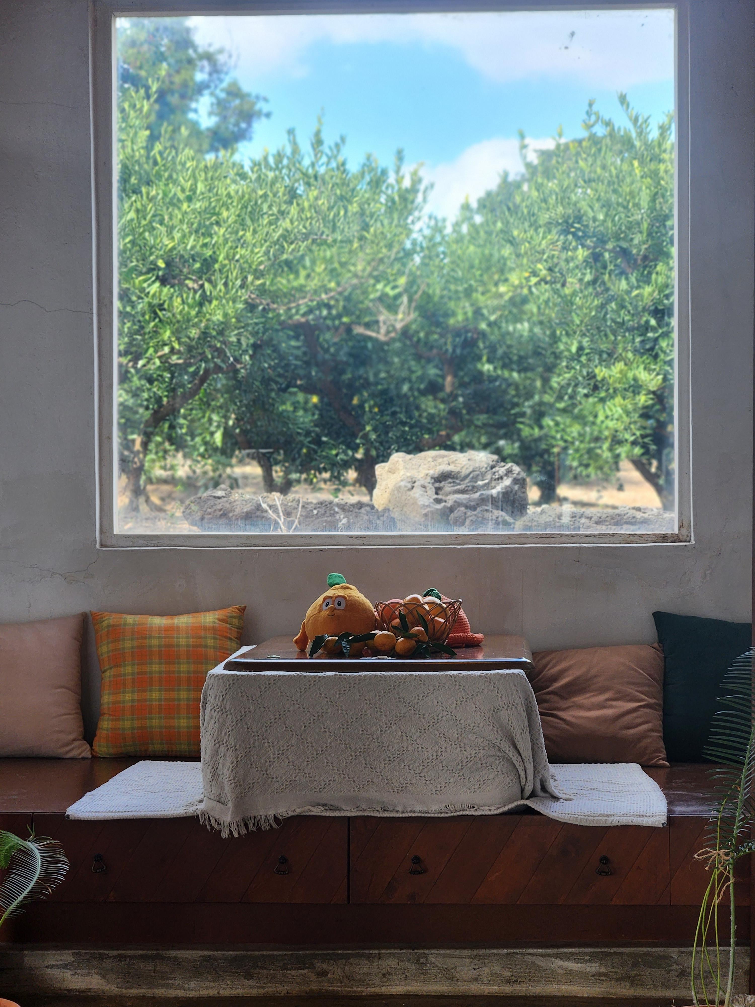 아기자기 창문 뒤로 보이는