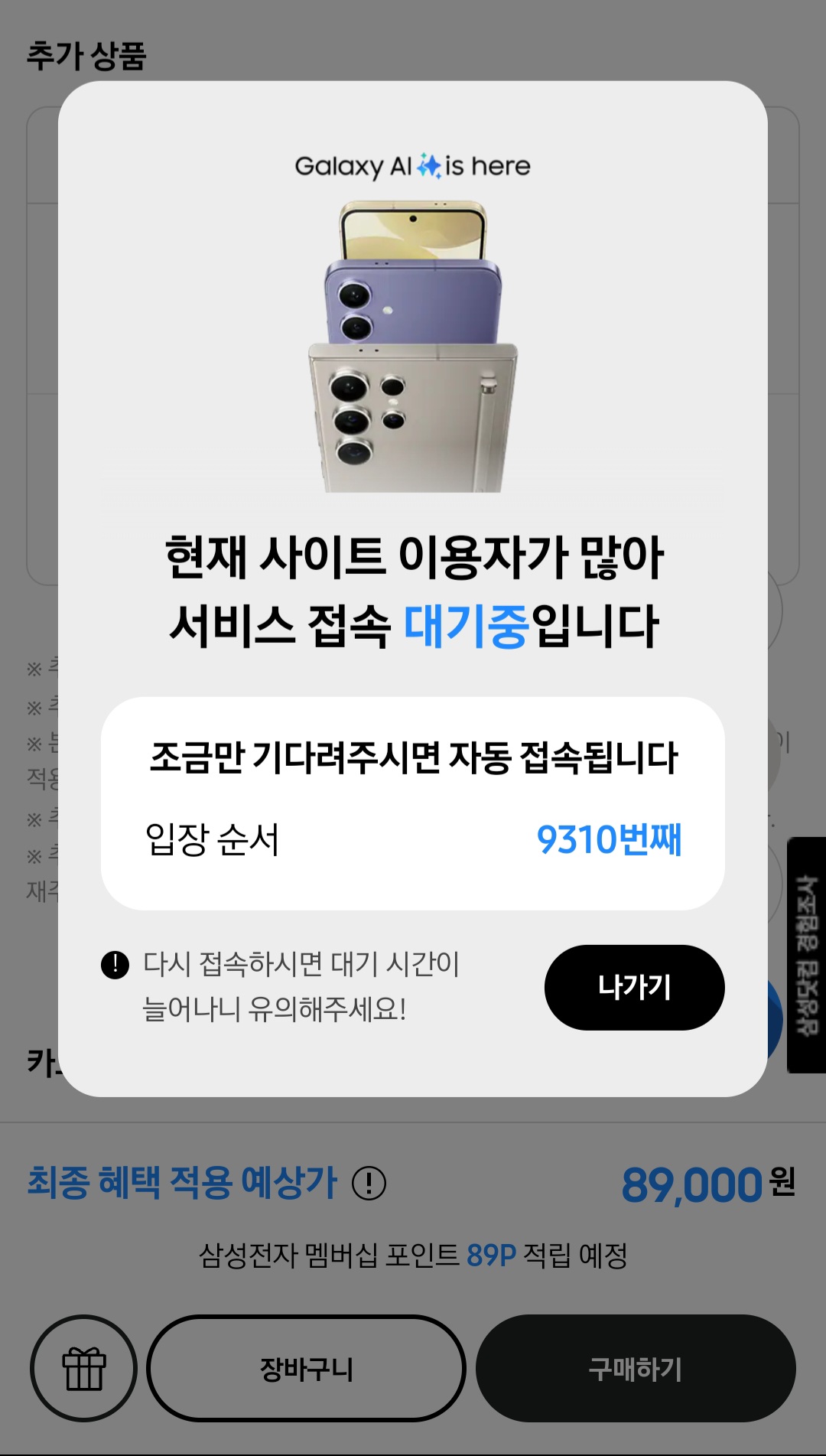 알람 못들어서 구매 실패