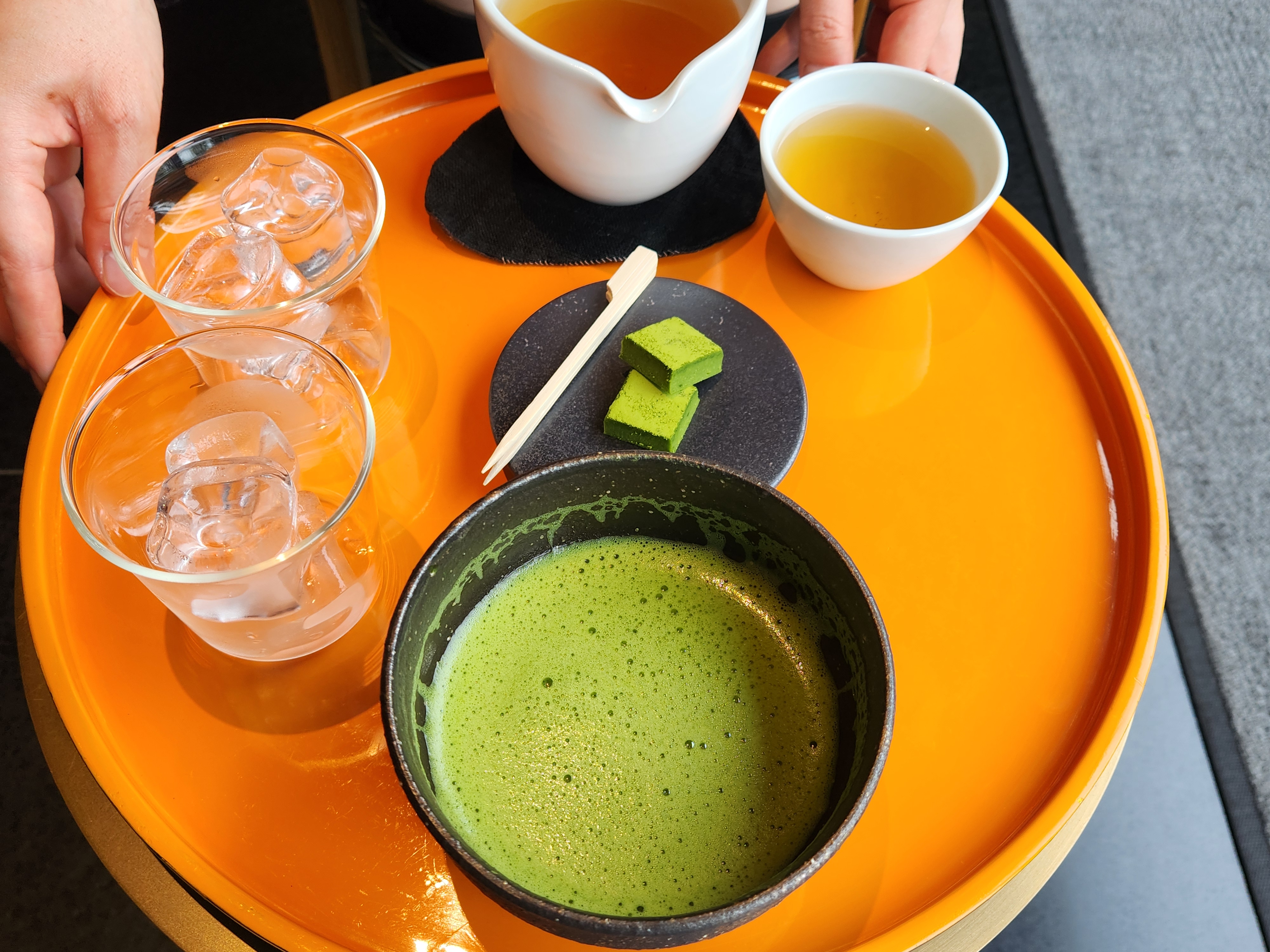 기념품 작은 천 가방과 티 서비스가 있어요.