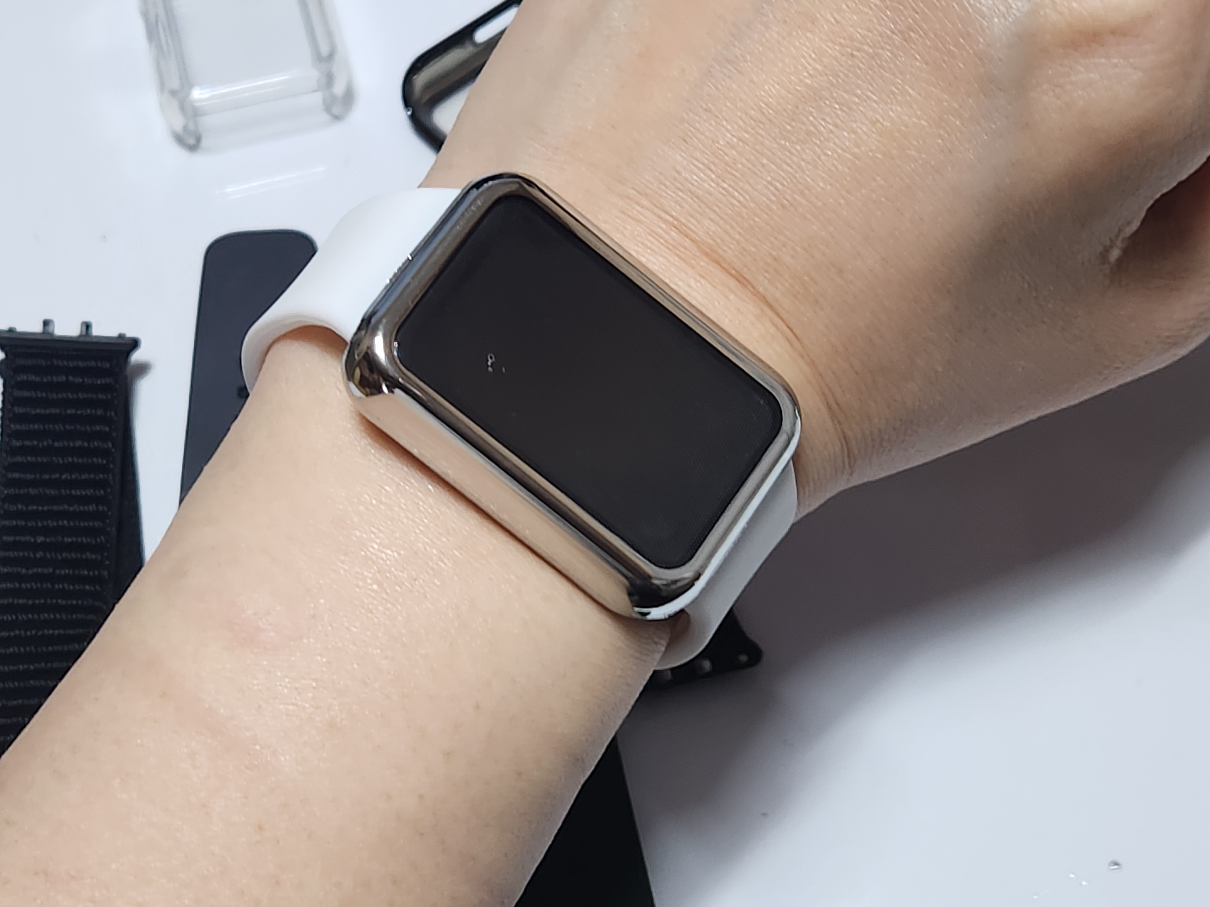 실버커버와 화이트 실리콘밴드를 착용해봤는데