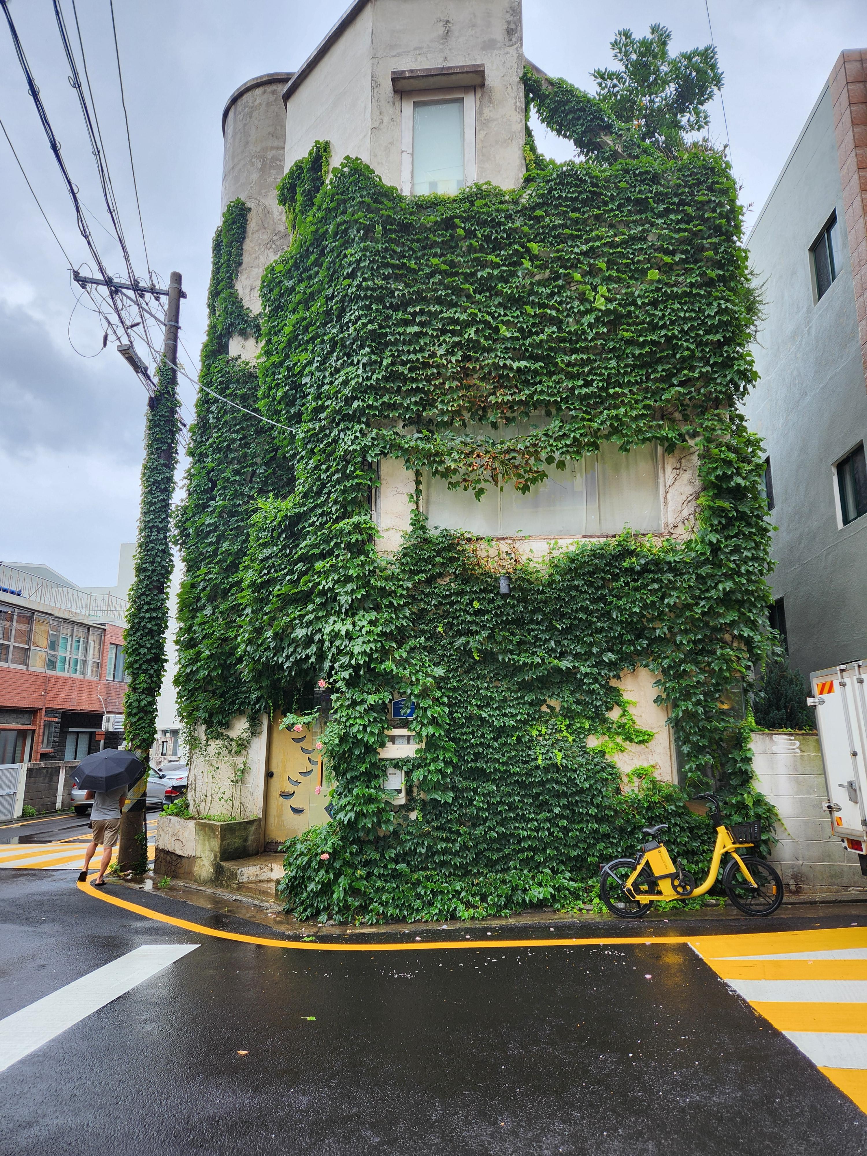 비오는 날 더욱 푸릇해보이는 덩쿨들.