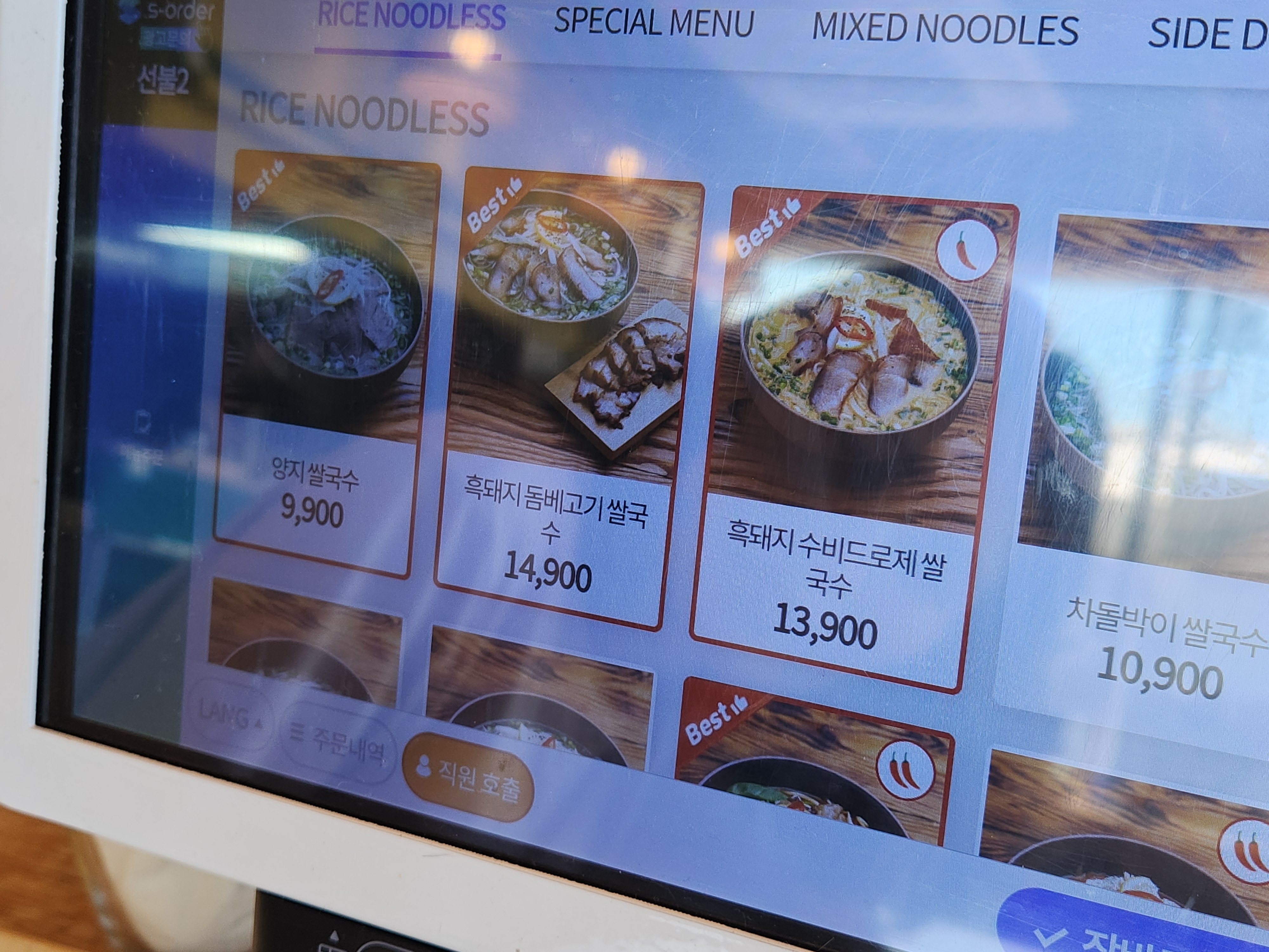 매운차돌박이 쌀국수와 차돌박이 쌀국수를 주문!