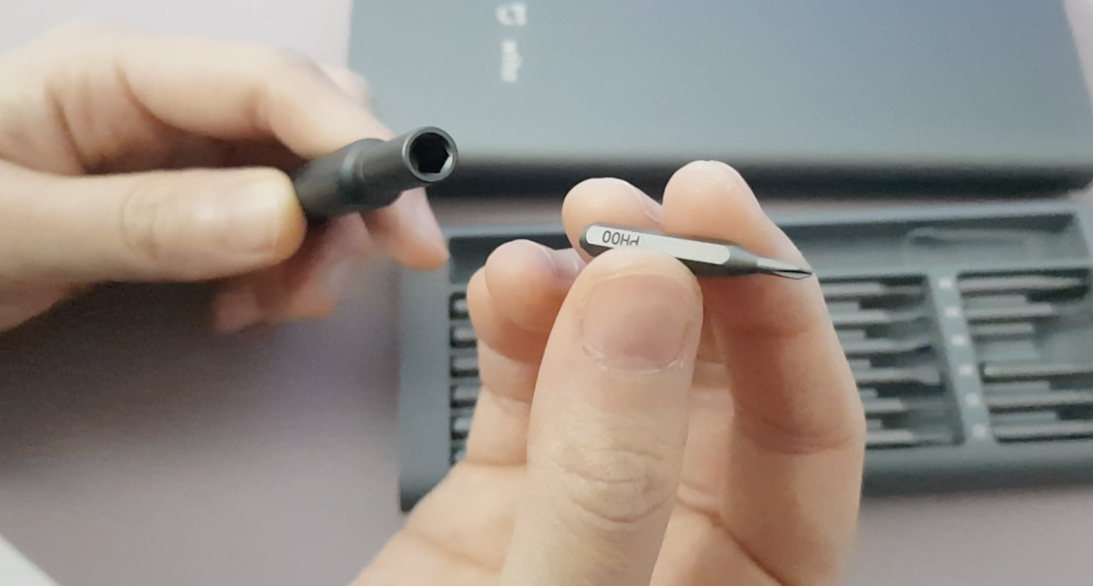 정밀 드라이버는 비트를 입구에 넣으면 자석 덕분에 자동으로 고정된다.
