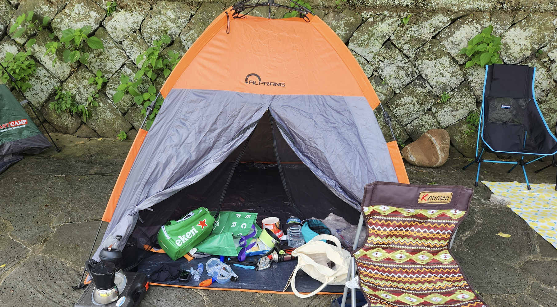 지금은 낙석때문에 텐트를 잘 펼치지 못하지만