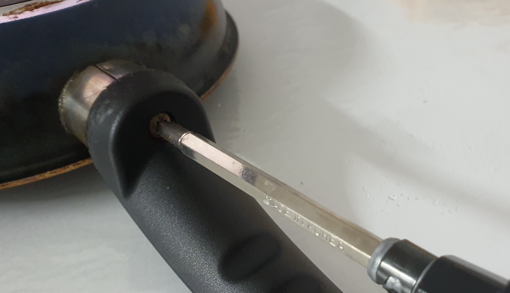 이렇게 나사 부분에 드라이버를 이용하여 손쉽게 후라이팬을 분리시킬 수 있다.