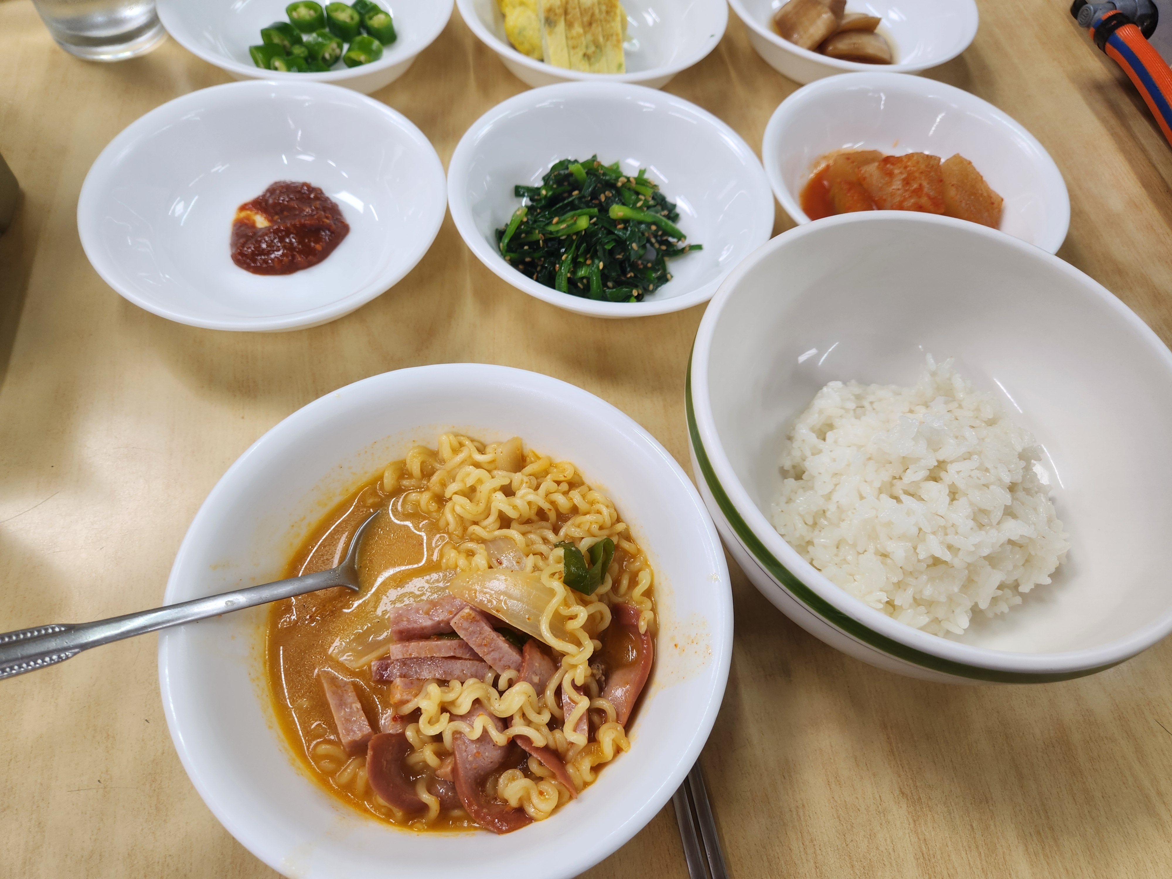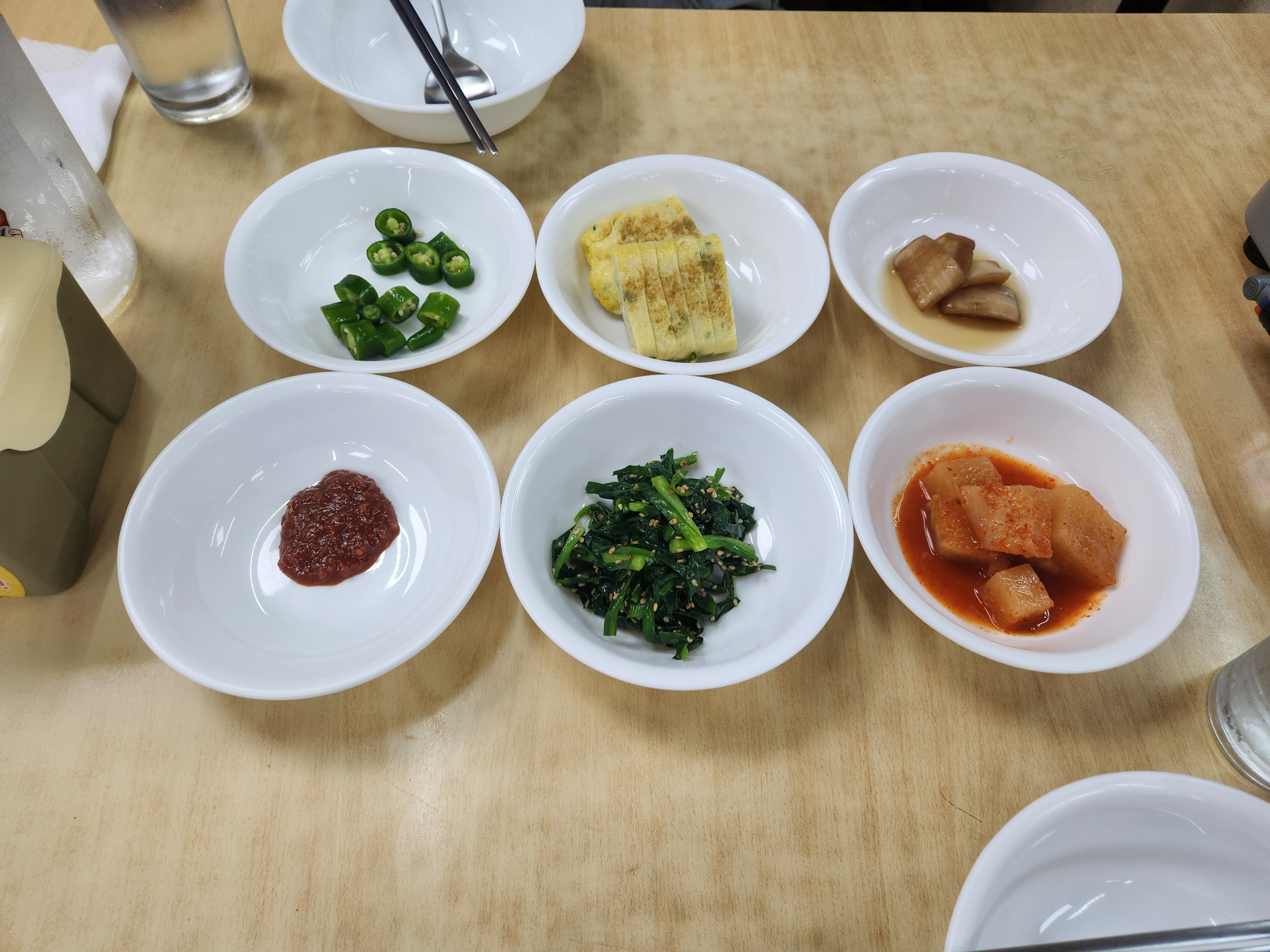 부대찌개에 기본반찬이 꽤 많이 나오는데