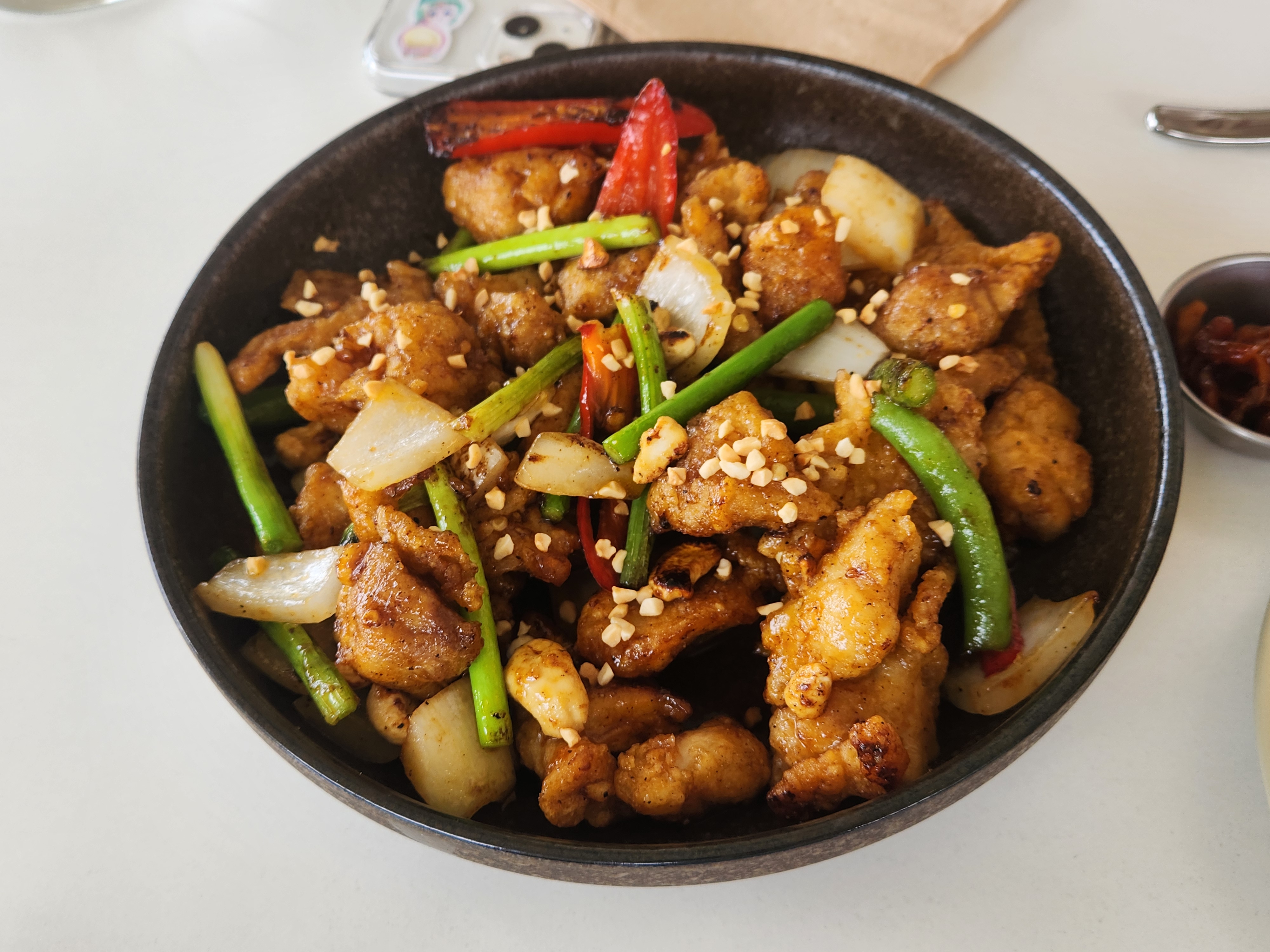 닭고기와 캐슈넛 양파 등등이