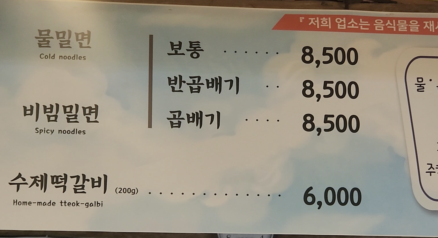 제주 동쪽 맛집 자연과 사람들 밀면집은 보통, 반곱배기,