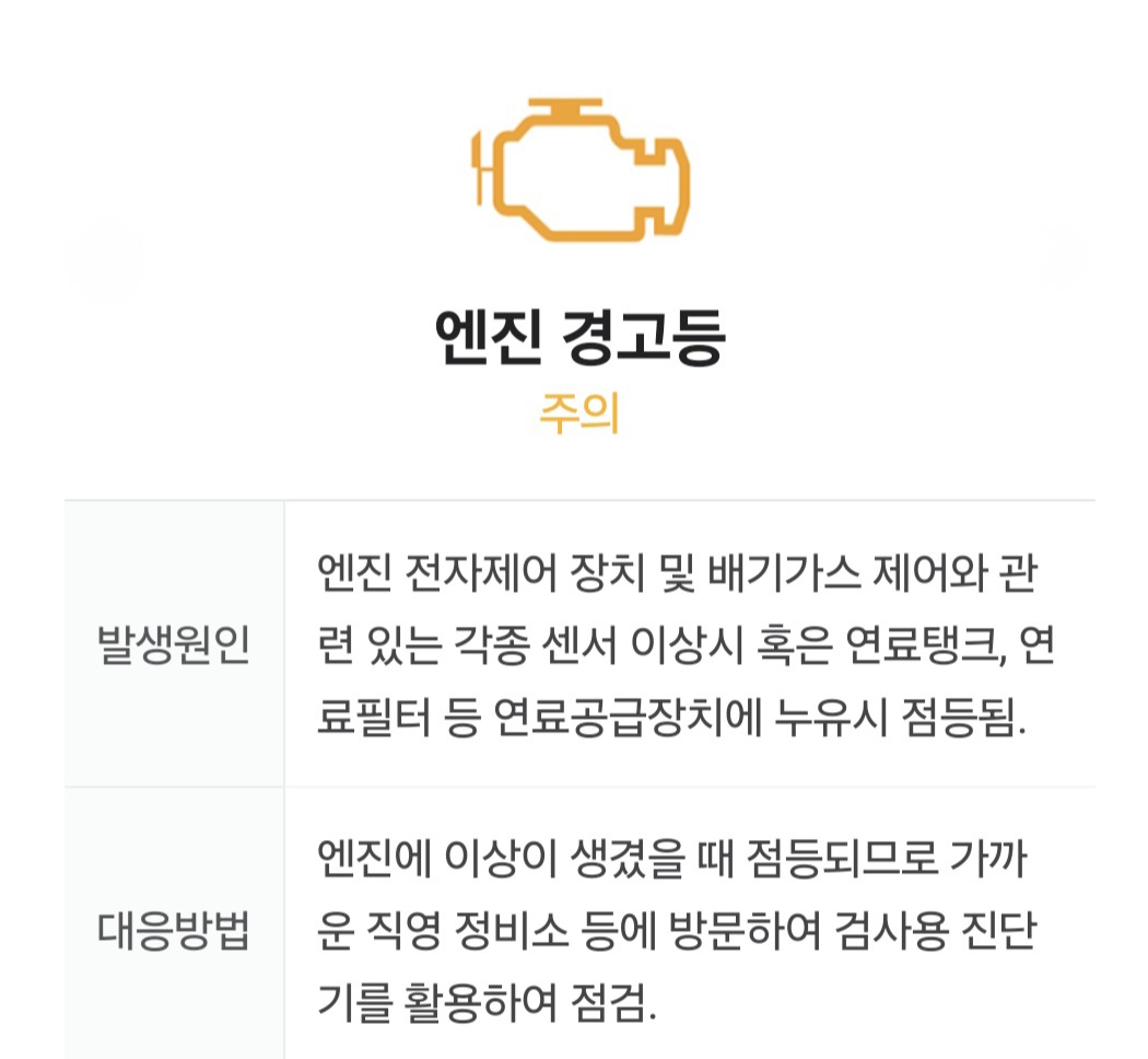엔진 경고등 첫번째 확인할 것 (스파크)