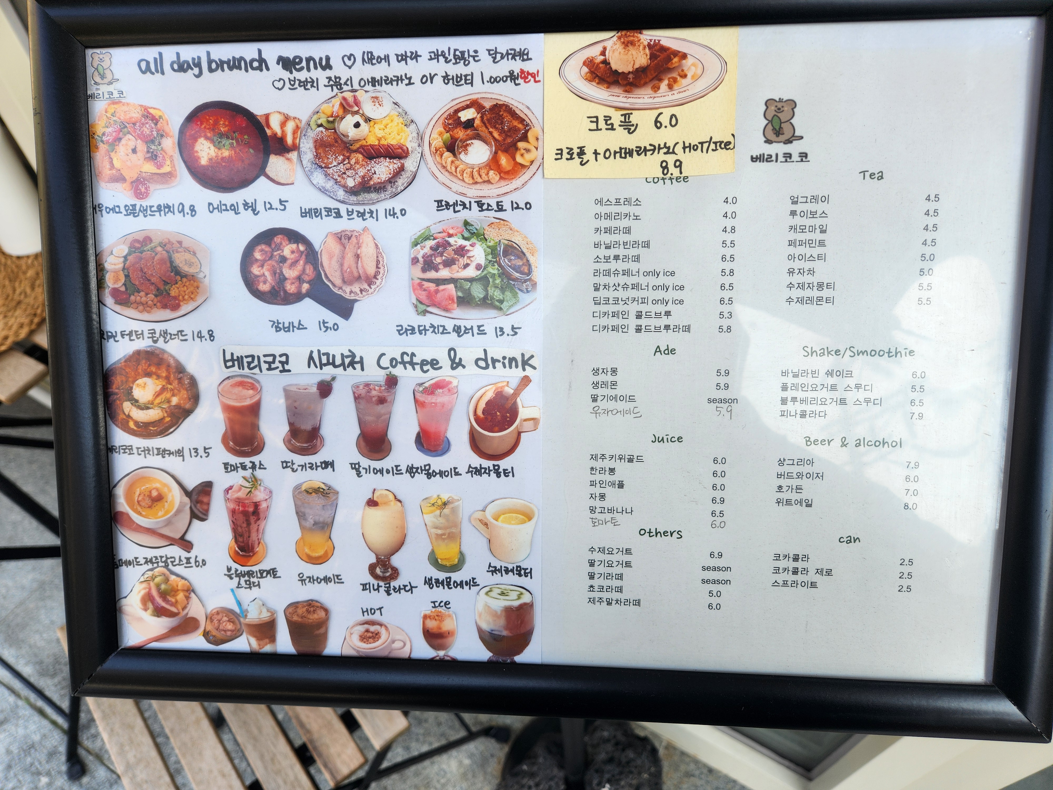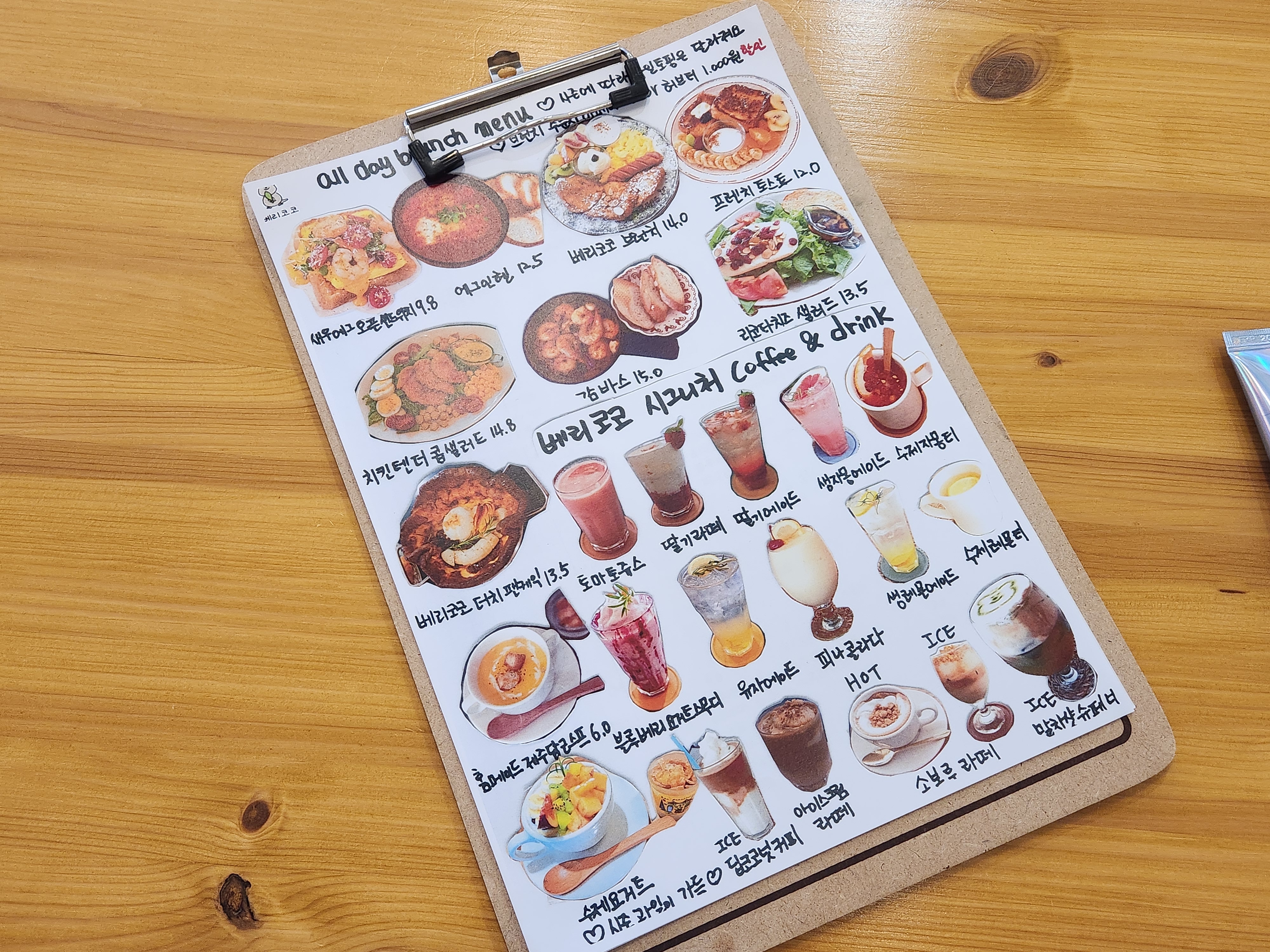 이렇게 테이블용 메뉴판도 있어서