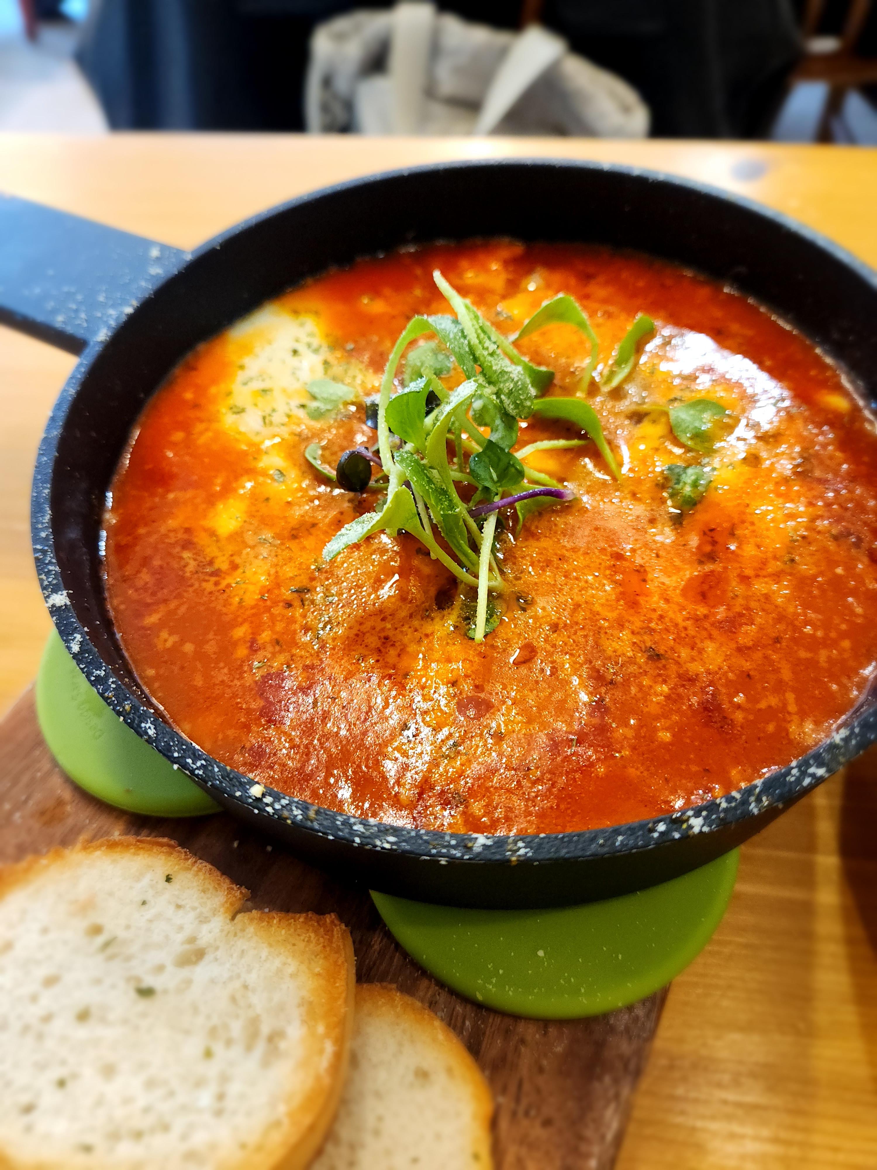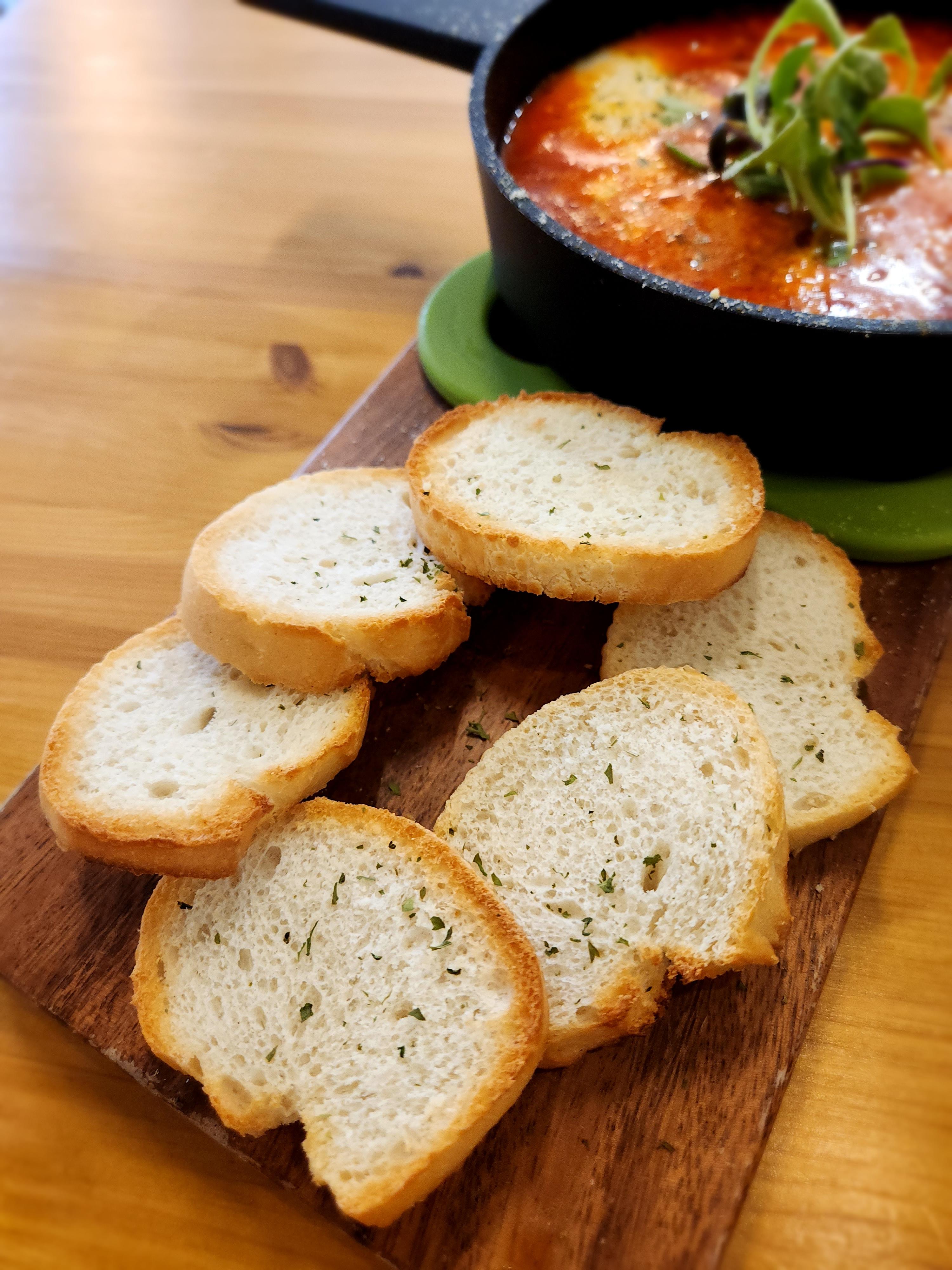 빵은 바삭하고 촉촉한 소스와