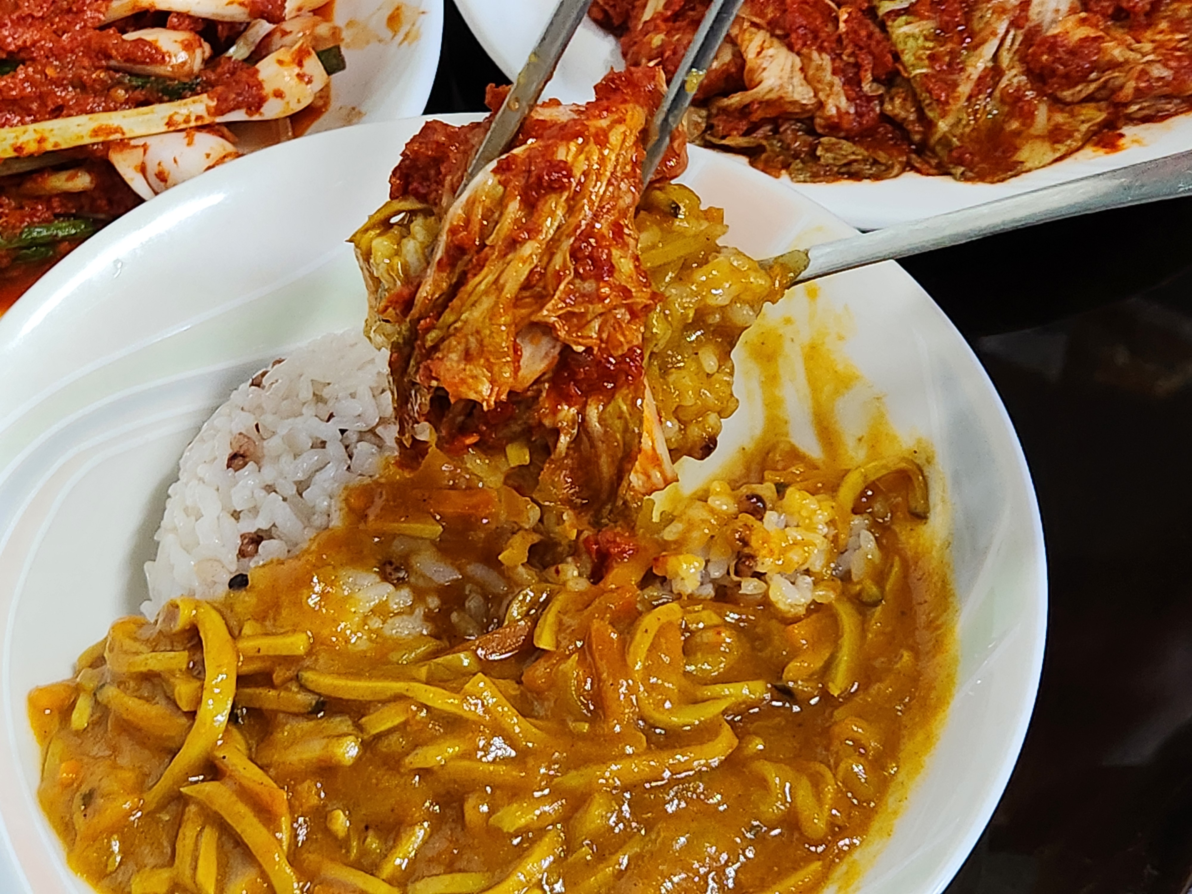 덜 매운 카레와 매운 김치의 콜라보! 이거 진짜 환상이었다.