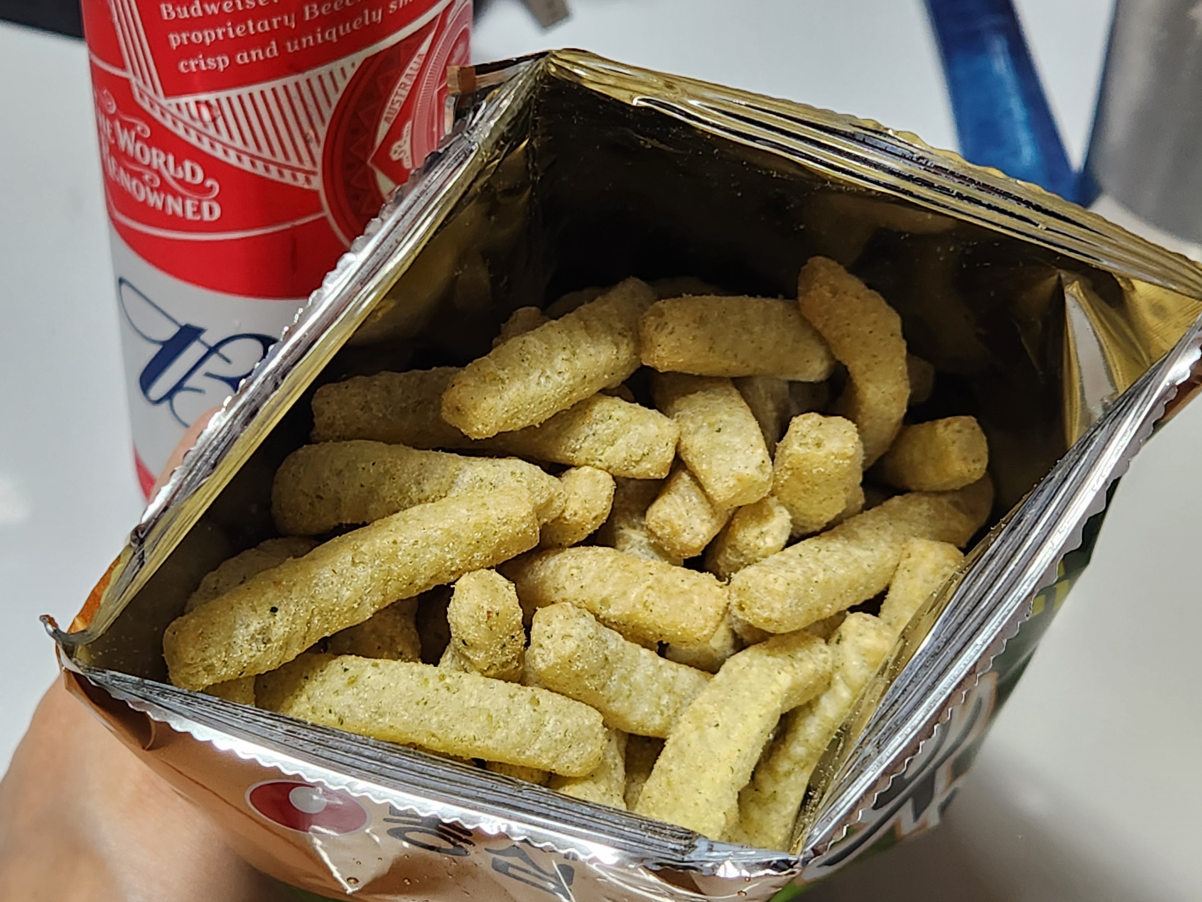 짭짤한 새우깡과 와사비의 매콤함이 의외로 조화로웠으며,