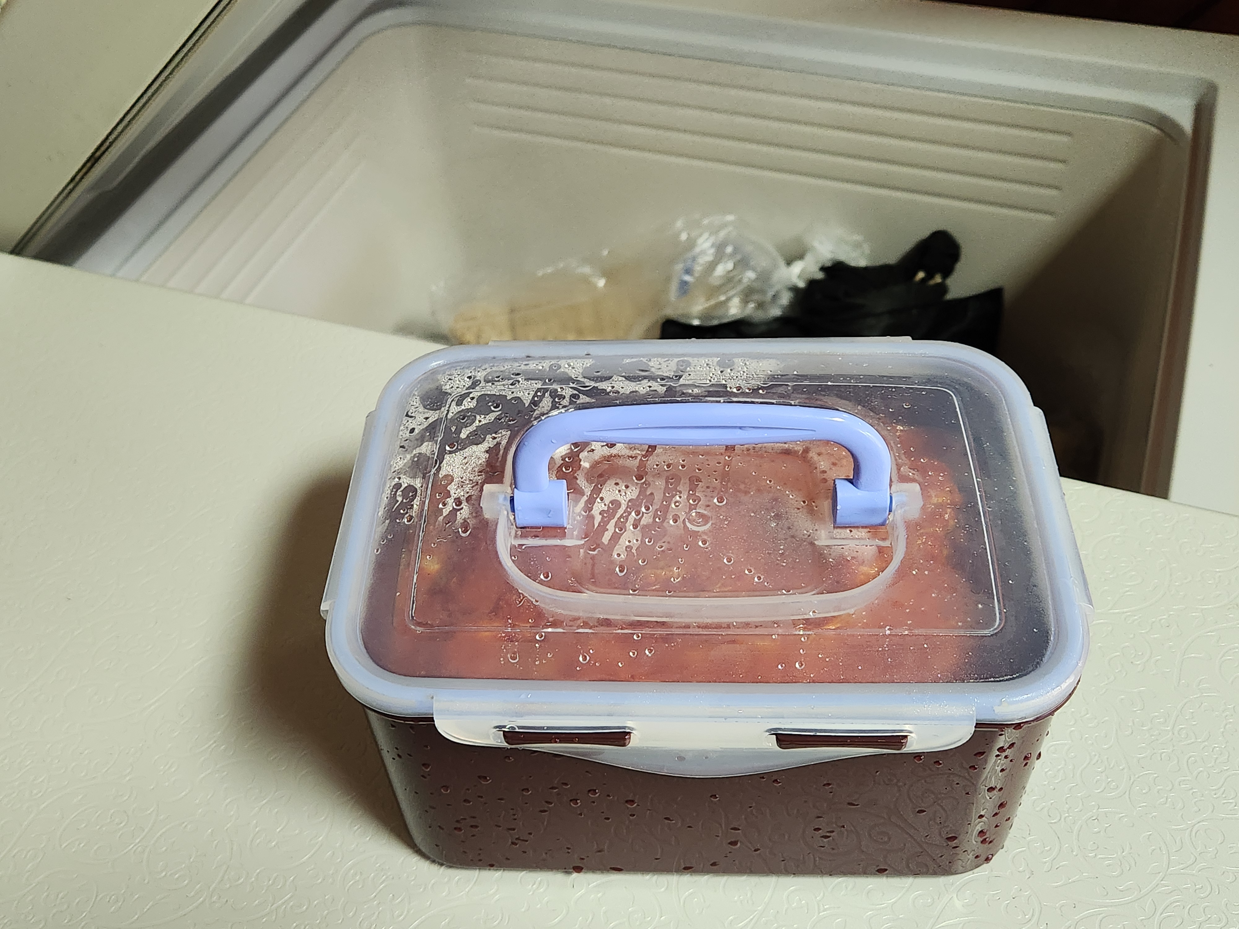 김치 봉투를 여는 순간 선홍빛보다