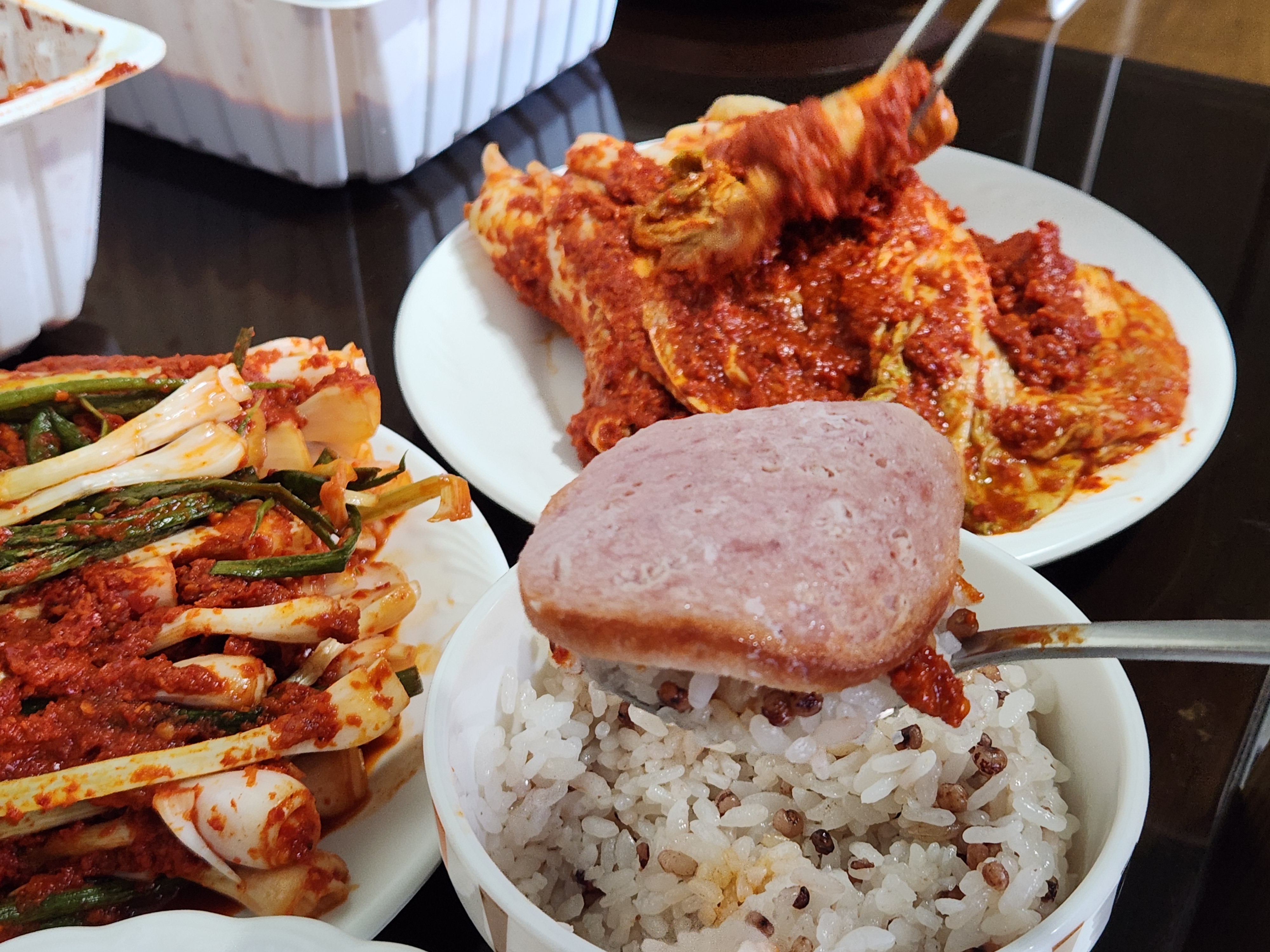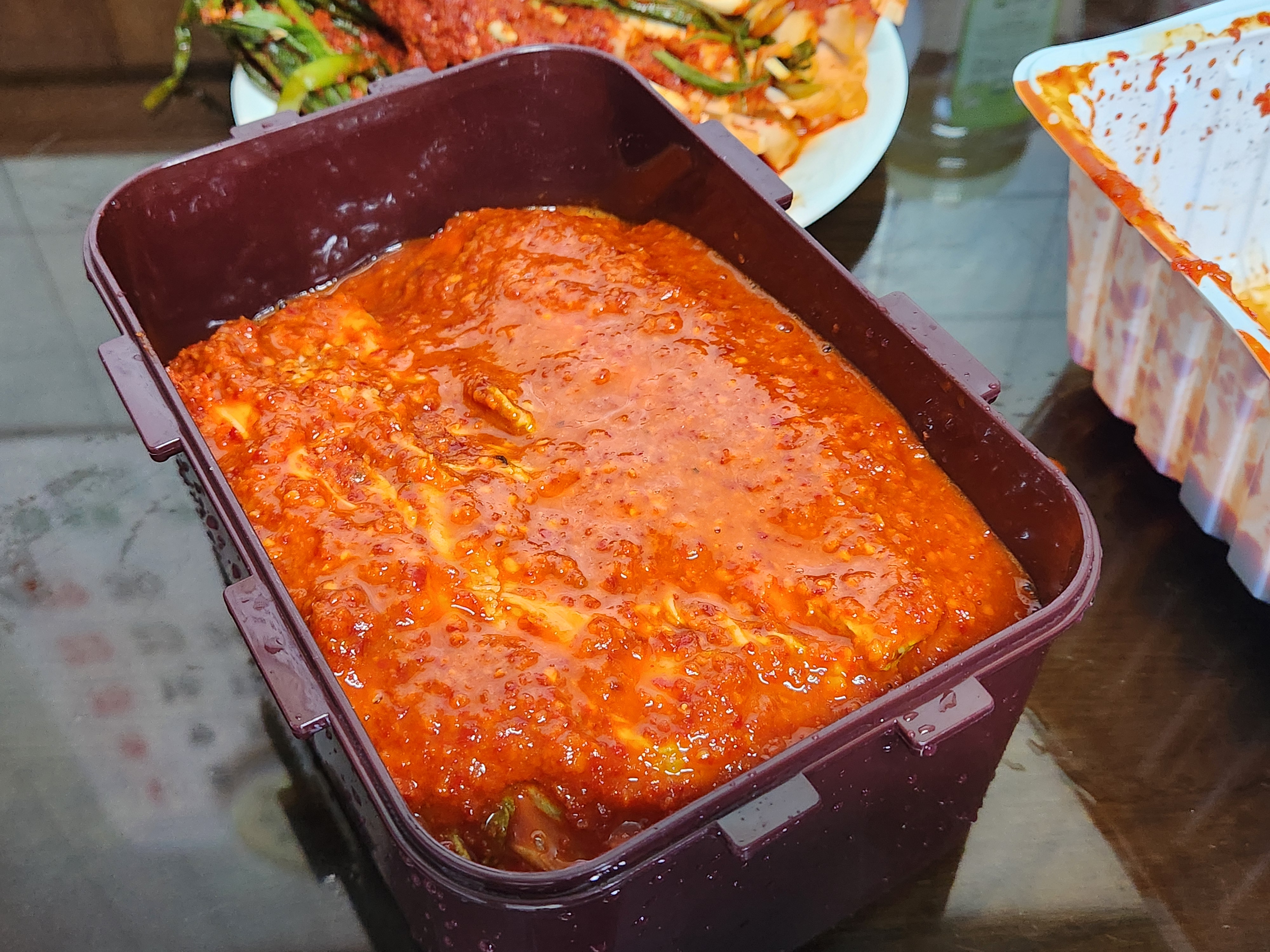 더 진한 암적색의 고추 양념이 시선을 압도한다.