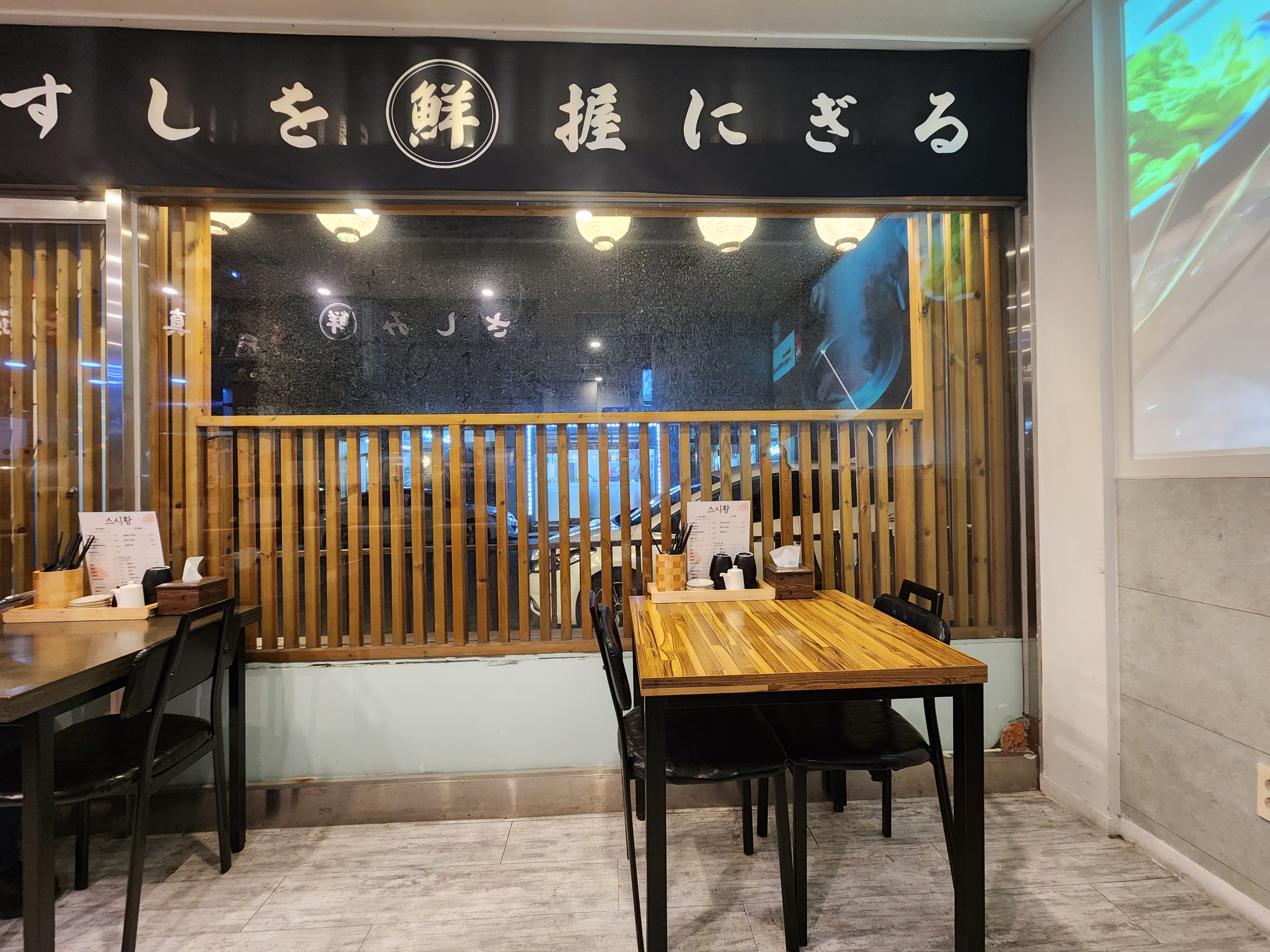 가게 외관부터 깔끔하고 정갈한 느낌이라 들어가기 전부터 믿음이 갔어요. 메뉴판 사진에도 보이듯 스시 종류가 꽤 다양했고, 사시미도 세트로 즐길 수 있어서 선택의 폭이 넓었어요.