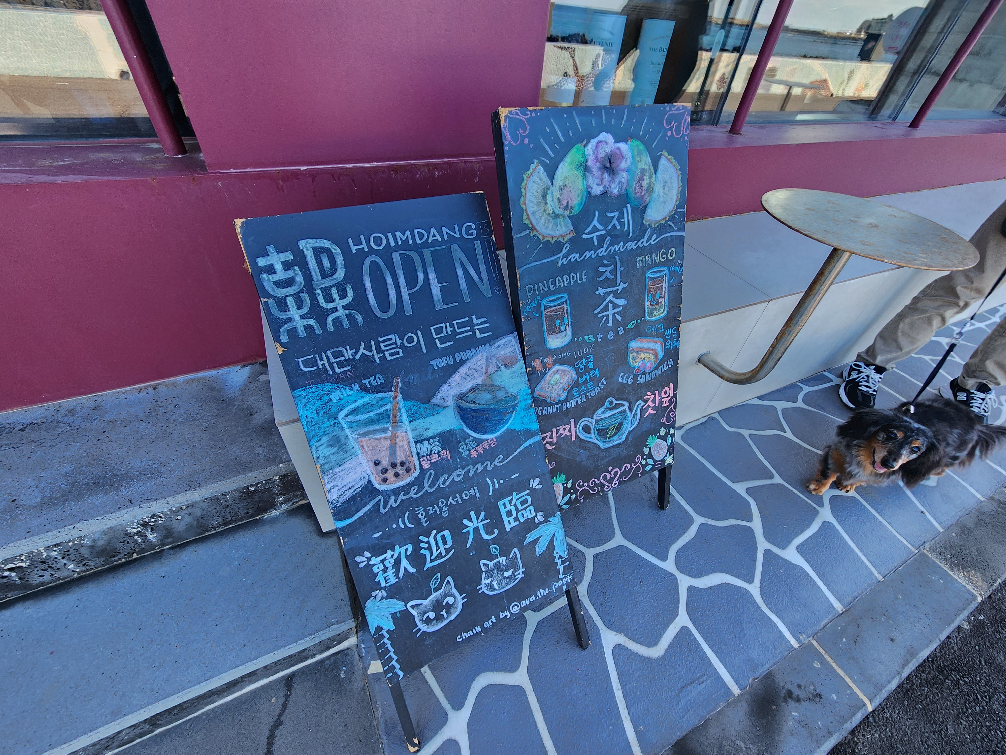메뉴: 흑당 버블티, 우롱 밀크티, 제주 호지 밀크티 등