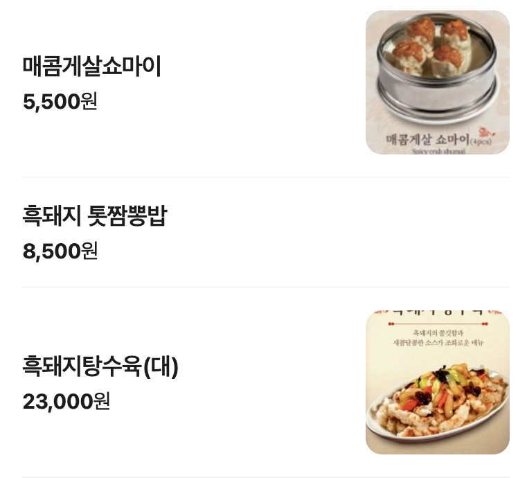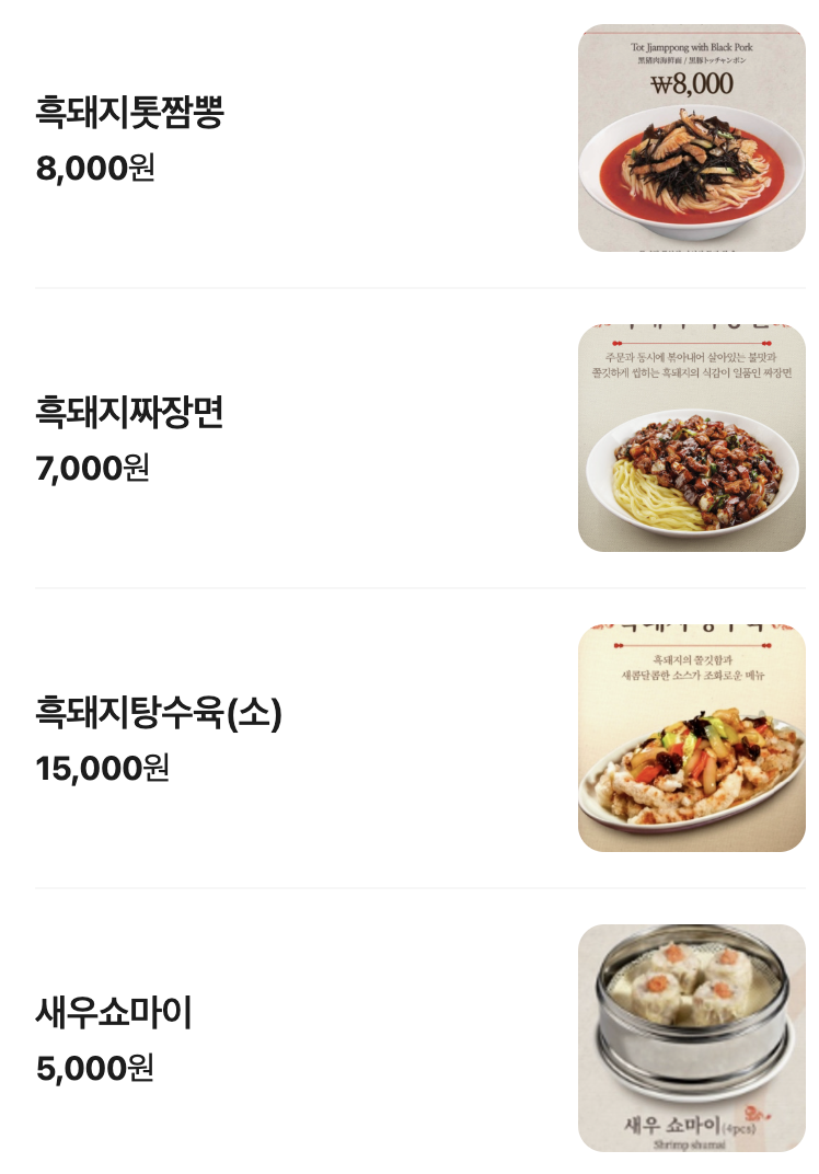 흑돼지를 활용한 중식 메뉴라고 해서